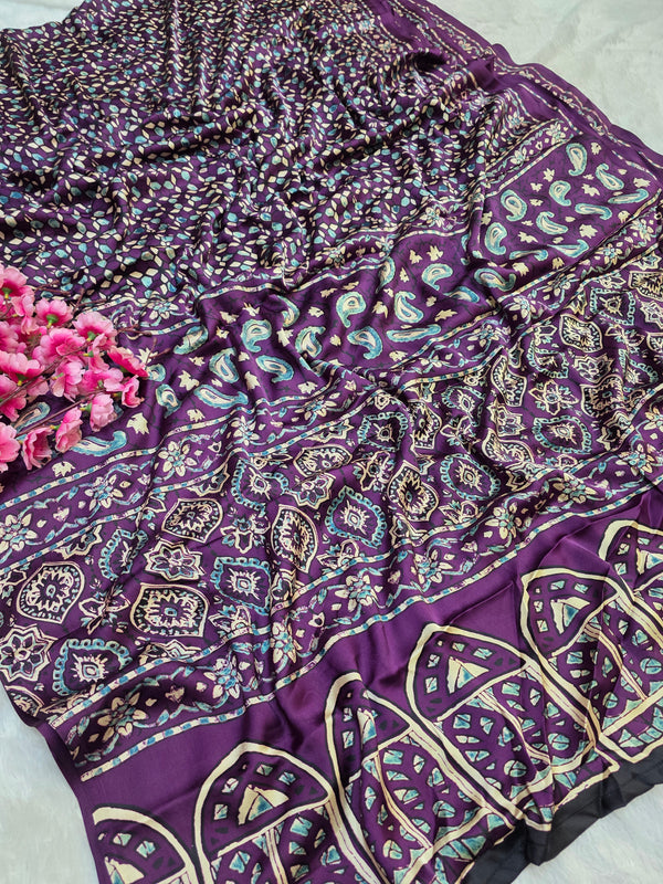 914004 Stylish Crepe Silk Digital Printed Saree - Wine