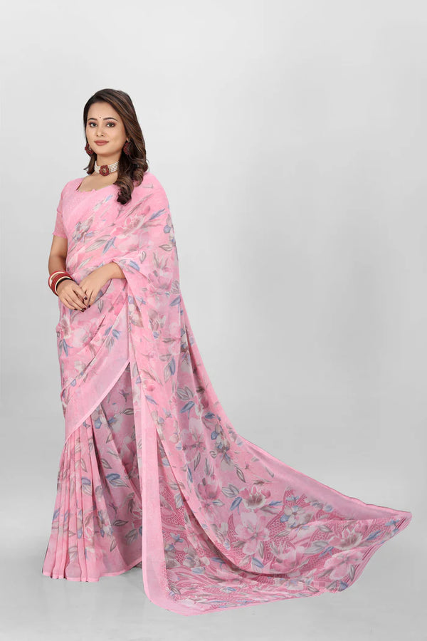 • Chinon Saree: Chinon sarees are lightweight. They have a silky finish. It has a beautiful polished finish. Ideal for formal wear.