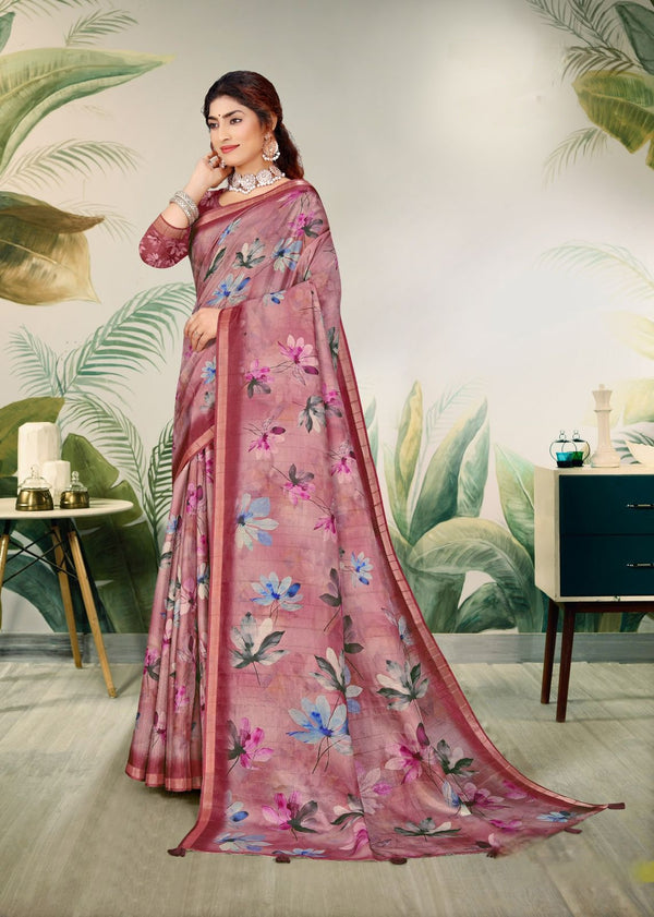 Cotton and linen sarees are the most comfortable to wear, especially in hot climates. These fabrics are breathable, lightweight, and soft, making them ideal for daily wear or casual events while providing a cool and comfortable feel.