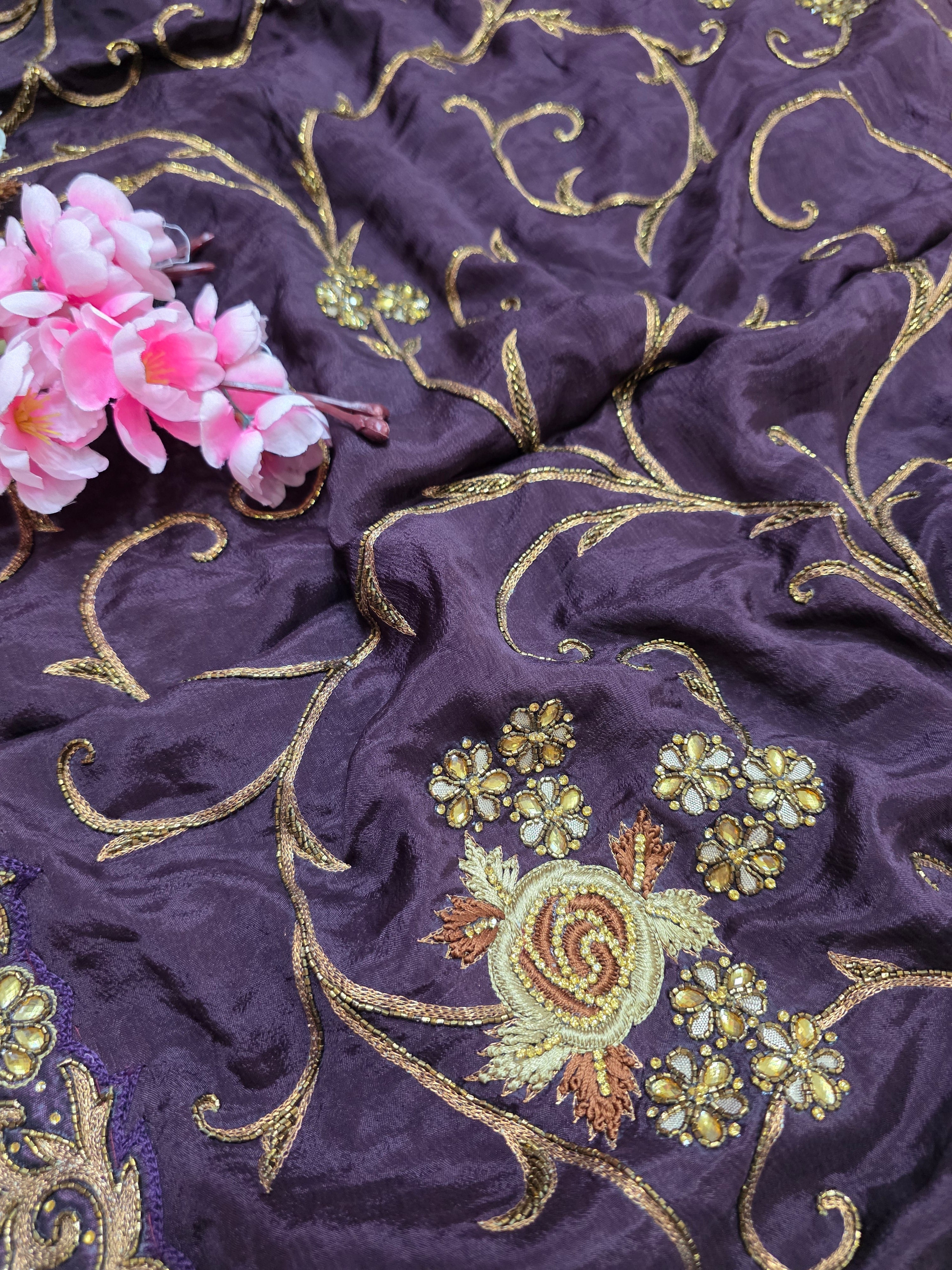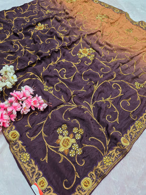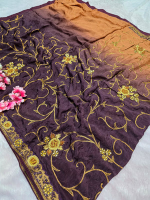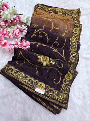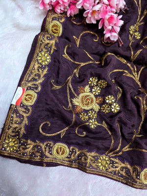 Home 0667 Exclusive Wedding and Party Perfect Pure Chinon Silk Saree With Hand Work