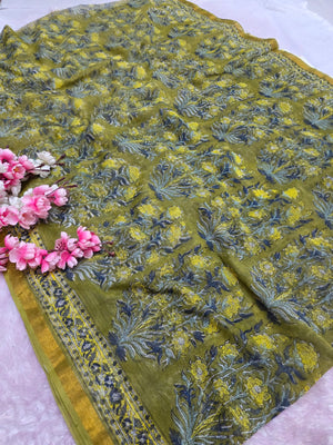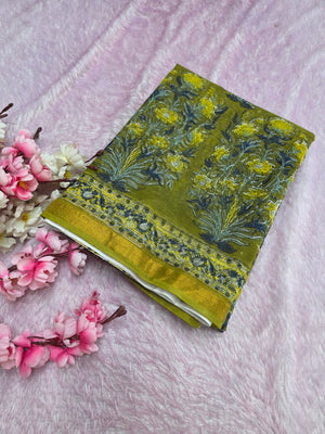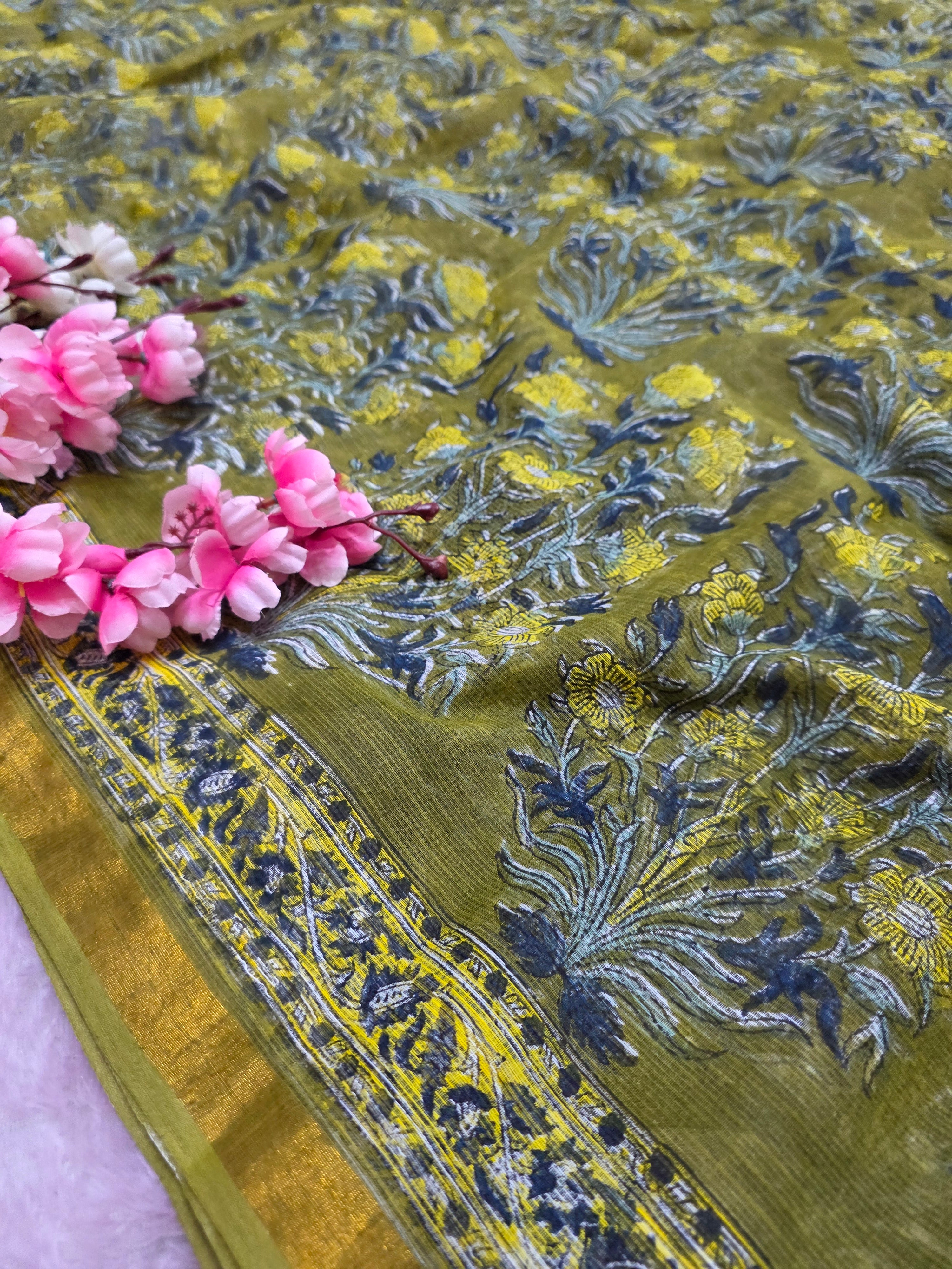 595002 शुद्ध कोटा डोरिया हैंडब्लॉक्ड प्रिंटेड साड़ी