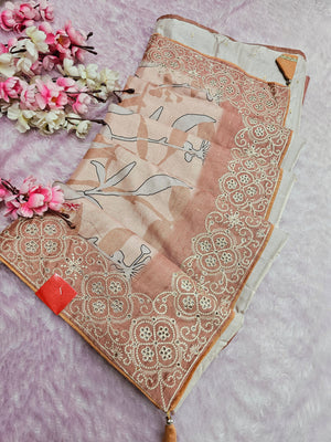 शुद्ध टसर सिल्क हाथ से बनी लेहरिया साड़ी प्रीमियम गोटापट्टी वर्क के साथ - 8837