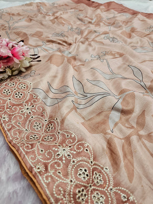 टिप्पणी : कैमरे और स्क्रीन में रंग प्रजनन के कारण साड़ी में हल्का रंग भिन्नता हो सकती है।