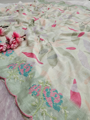 टिप्पणी : कैमरे और स्क्रीन में रंग प्रजनन के कारण साड़ी में हल्का रंग भिन्नता हो सकती है।