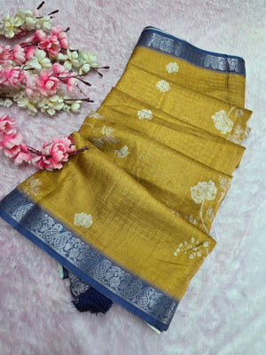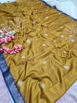 शुद्ध टसर सिल्क हाथ से बनी लेहरिया साड़ी प्रीमियम गोटापट्टी वर्क के साथ - 8837