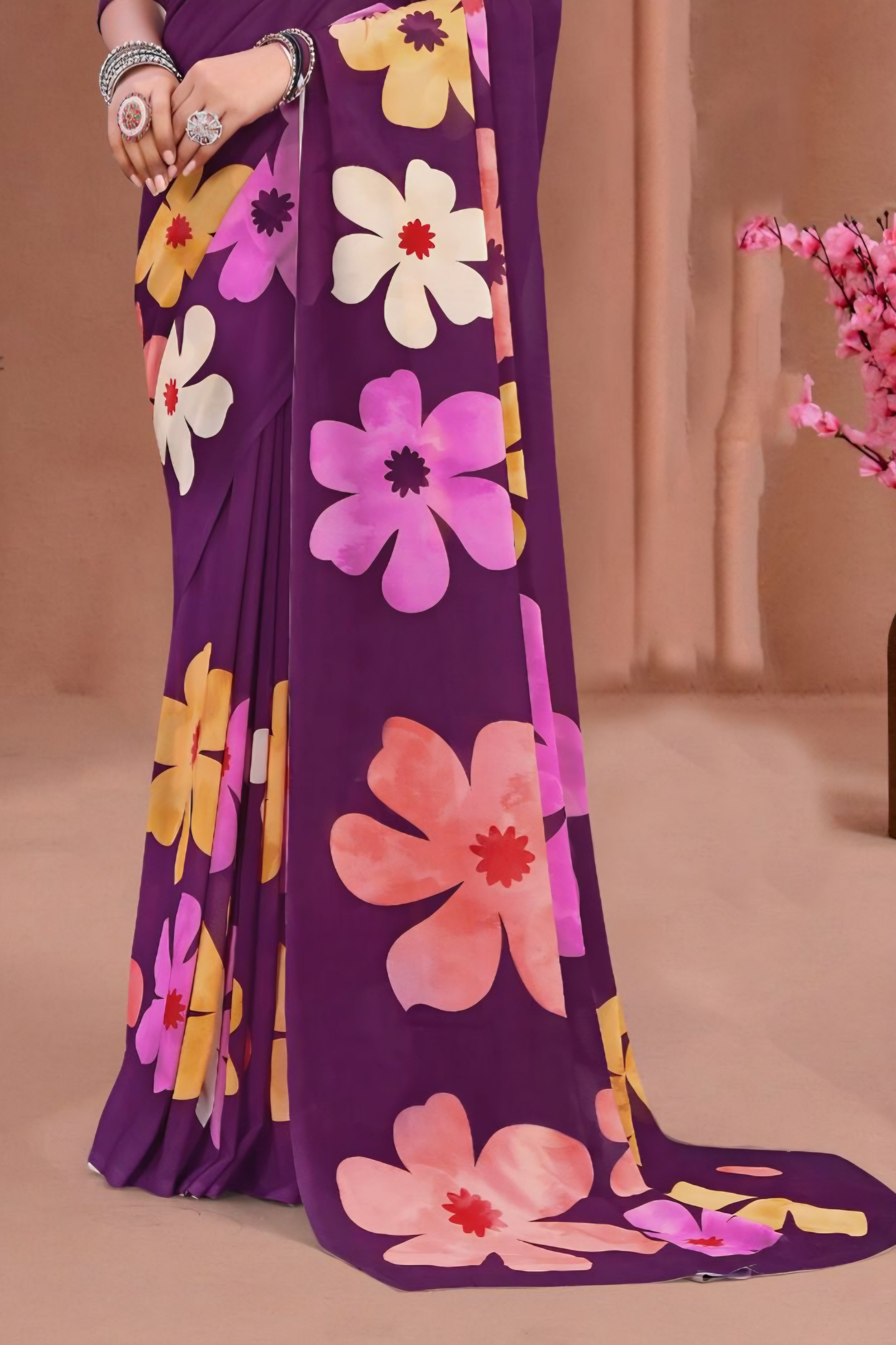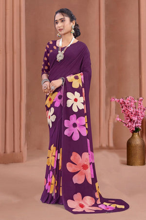 695012 डिजिटल फ्लावर प्रिंट जॉर्जेट क्रेप साड़ी
