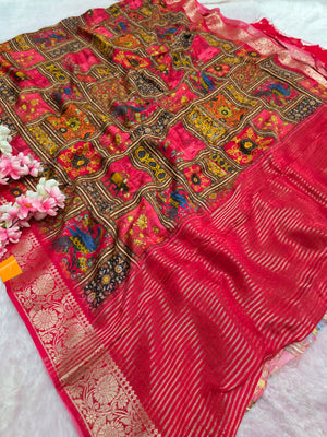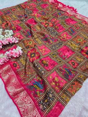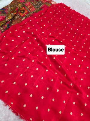 शुद्ध टसर सिल्क हाथ से बनी लेहरिया साड़ी प्रीमियम गोटापट्टी वर्क के साथ - 8837