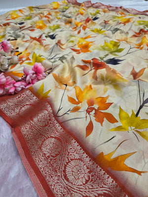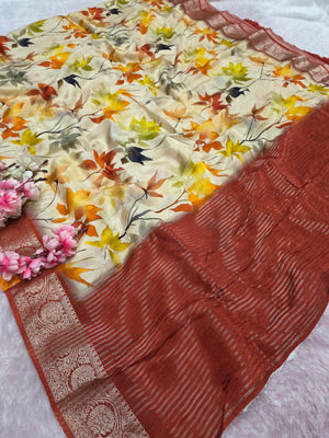 टिप्पणी : कैमरे और स्क्रीन में रंग प्रजनन के कारण साड़ी में हल्का रंग भिन्नता हो सकती है।