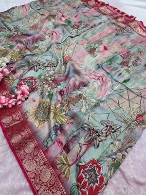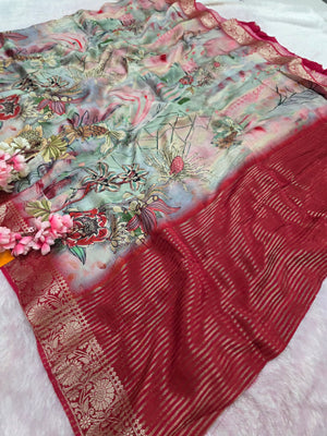 टिप्पणी : कैमरे और स्क्रीन में रंग प्रजनन के कारण साड़ी में हल्का रंग भिन्नता हो सकती है।