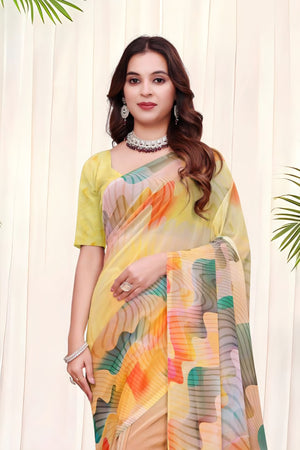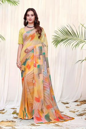 695012 डिजिटल फ्लावर प्रिंट जॉर्जेट क्रेप साड़ी