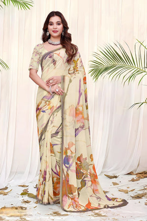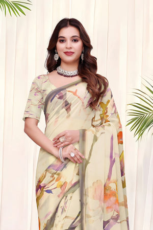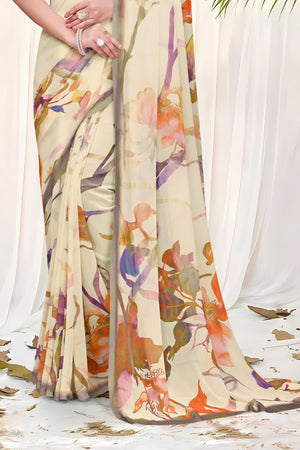 695012 डिजिटल फ्लावर प्रिंट जॉर्जेट क्रेप साड़ी