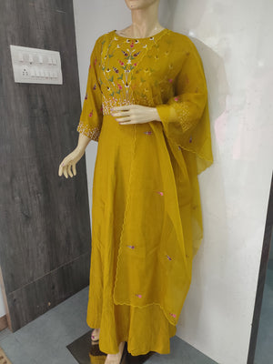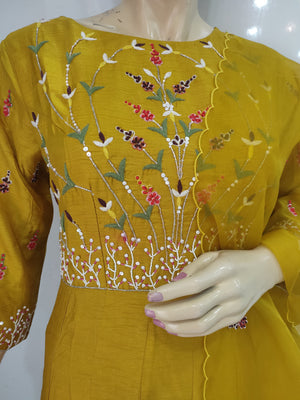 104004 डिज़ाइनर डोला सिल्क लॉन्ग कुर्ती दुपट्टे के साथ - मस्टर्ड