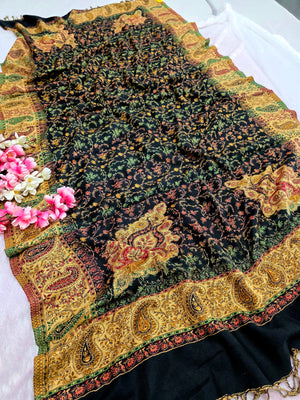 682011 ट्रेंडिंग अजरख प्रिंट इटैलियन क्रेप सिल्क साड़ी - मस्टर्ड