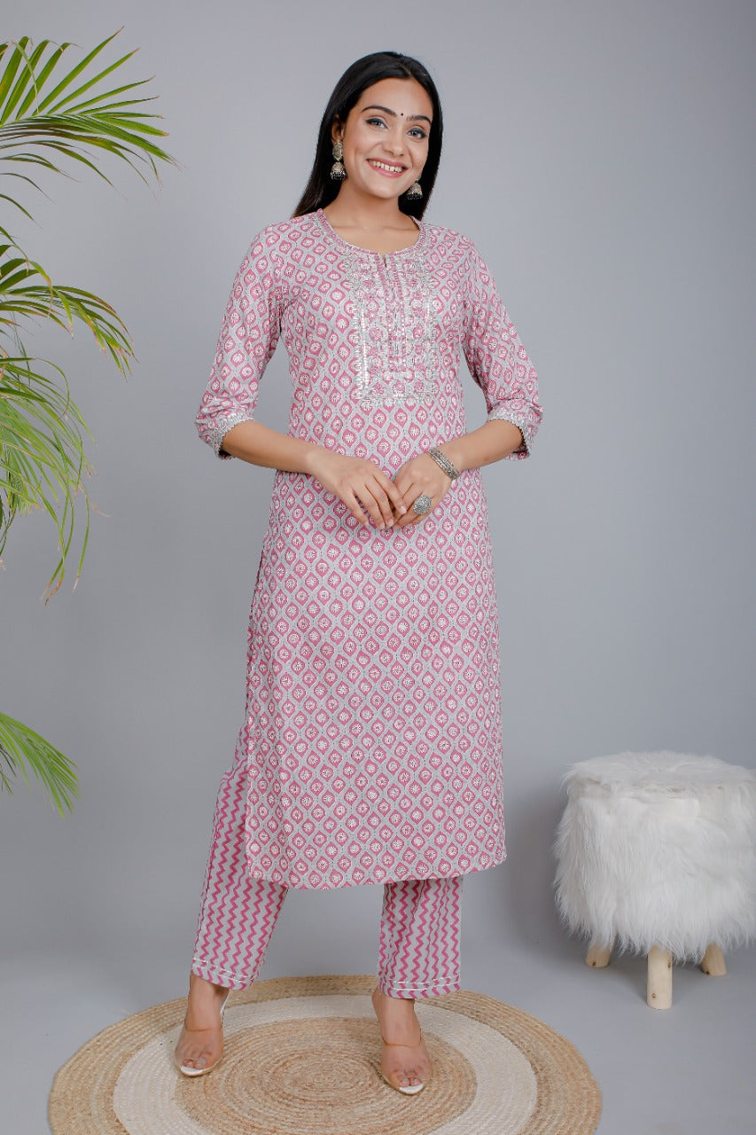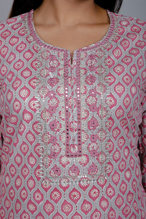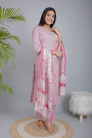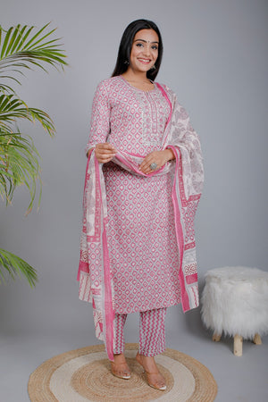 107011 कॉटन कुर्ती पैंट सेट दुपट्टे के साथ