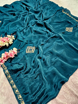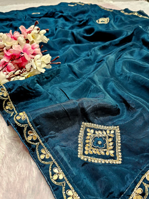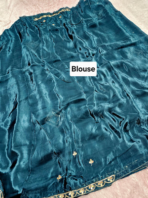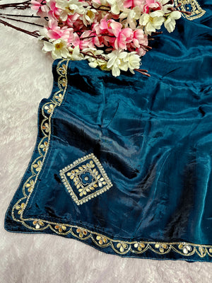 12456 Designer Pure H.O. Silk Traditional Rajasthani Saree with Hand Work - Teal