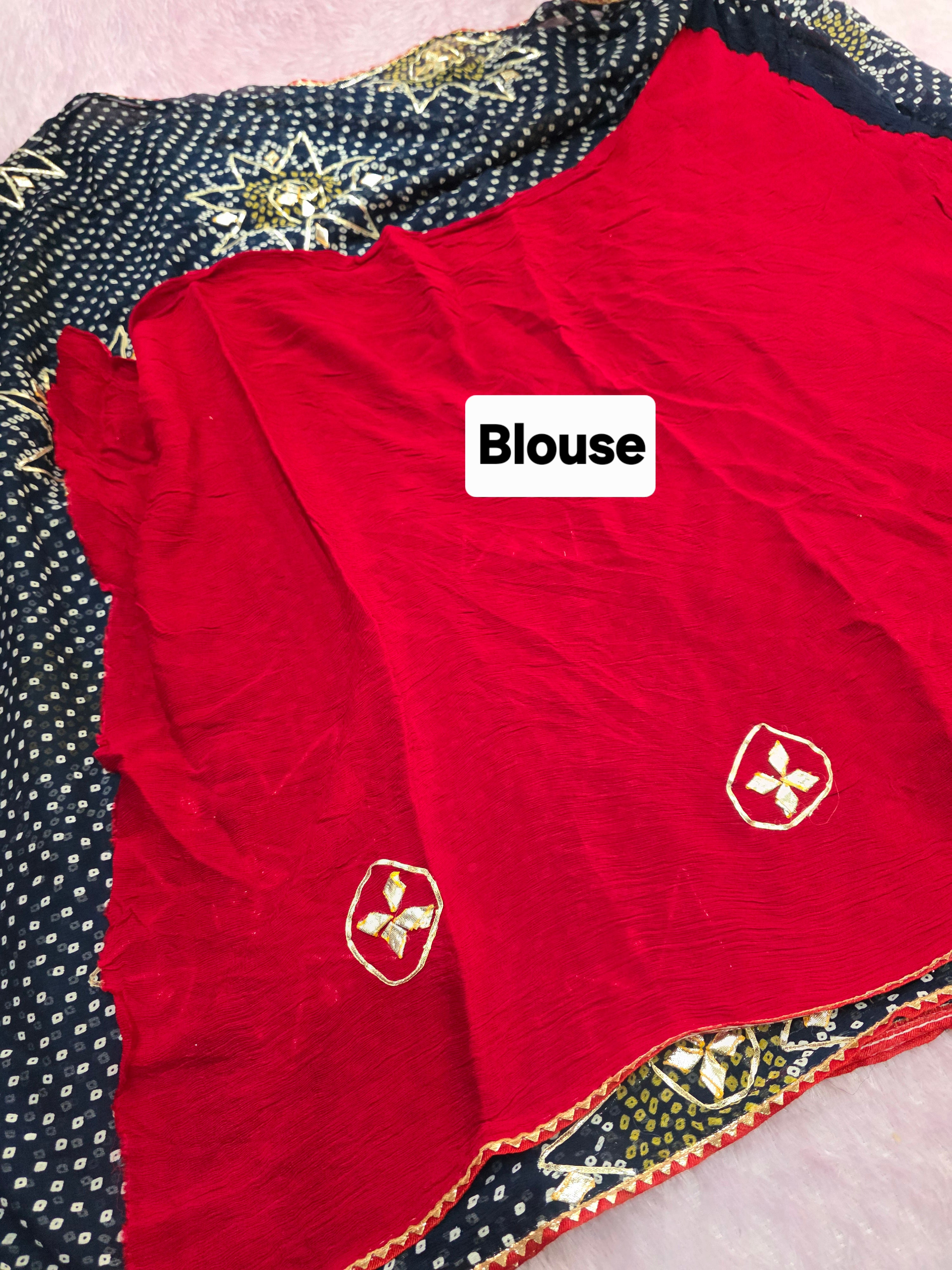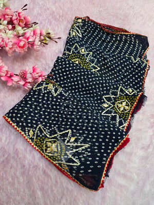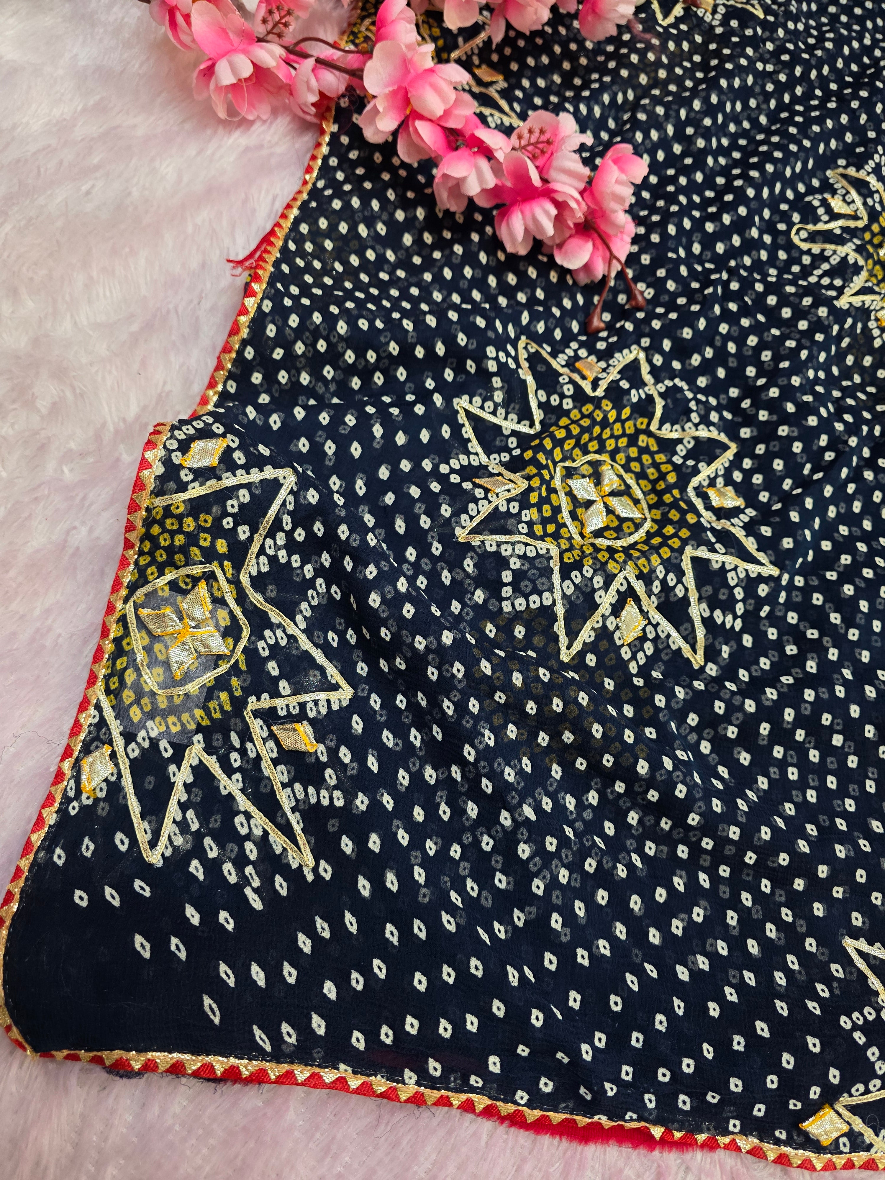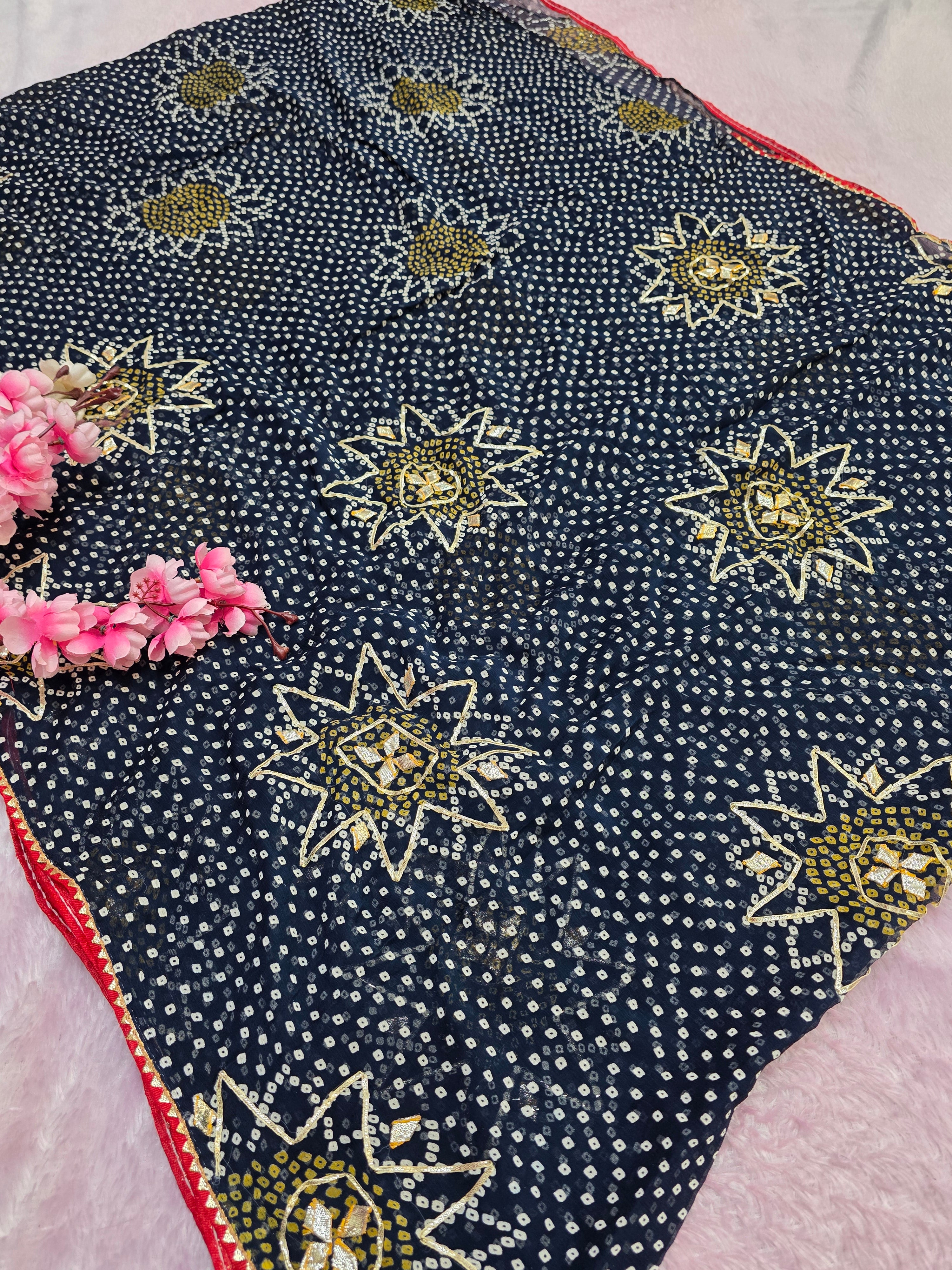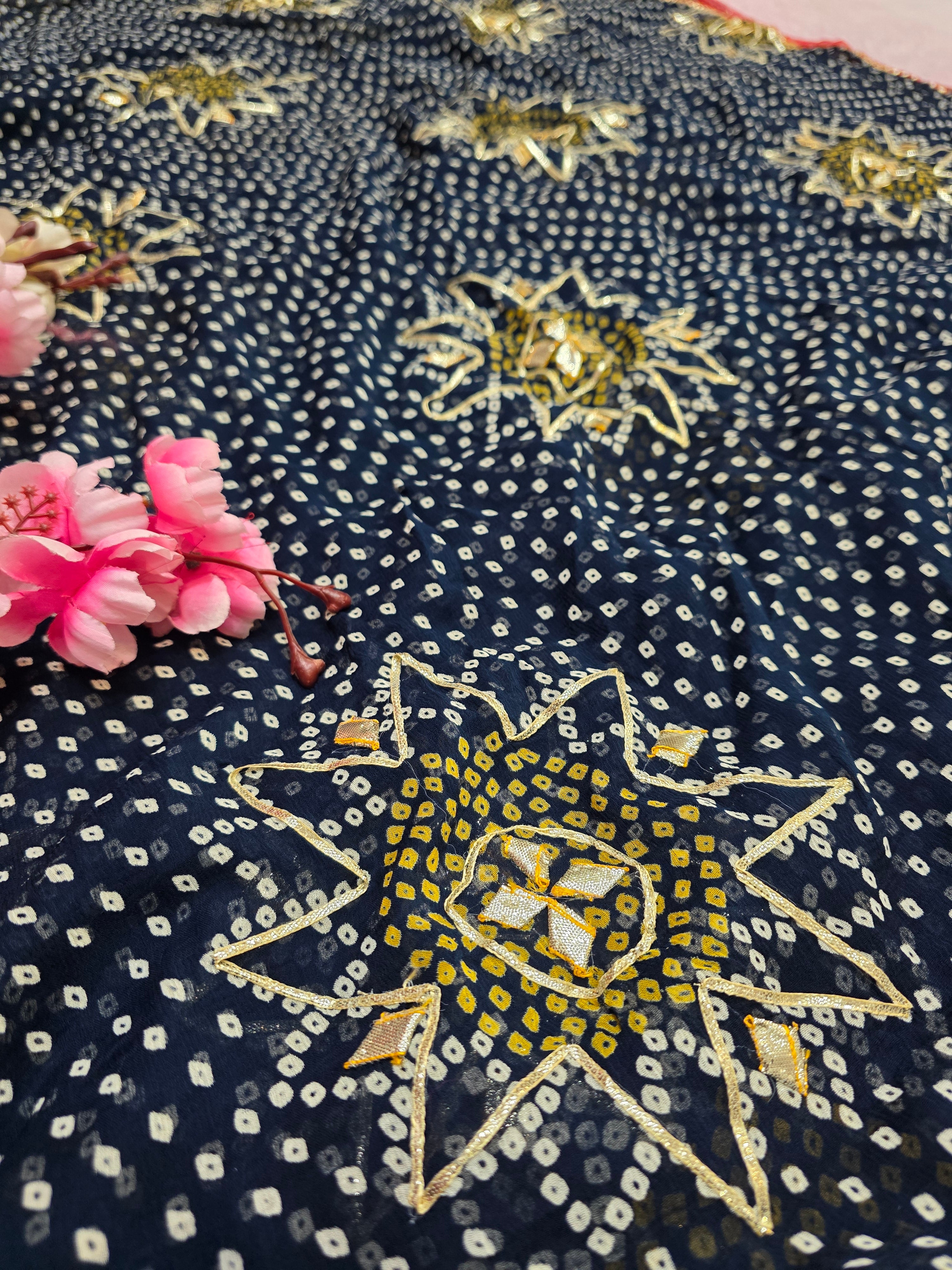 12475 Pure Chiffon Bandhani Saree with Gotapatti Work - Blue