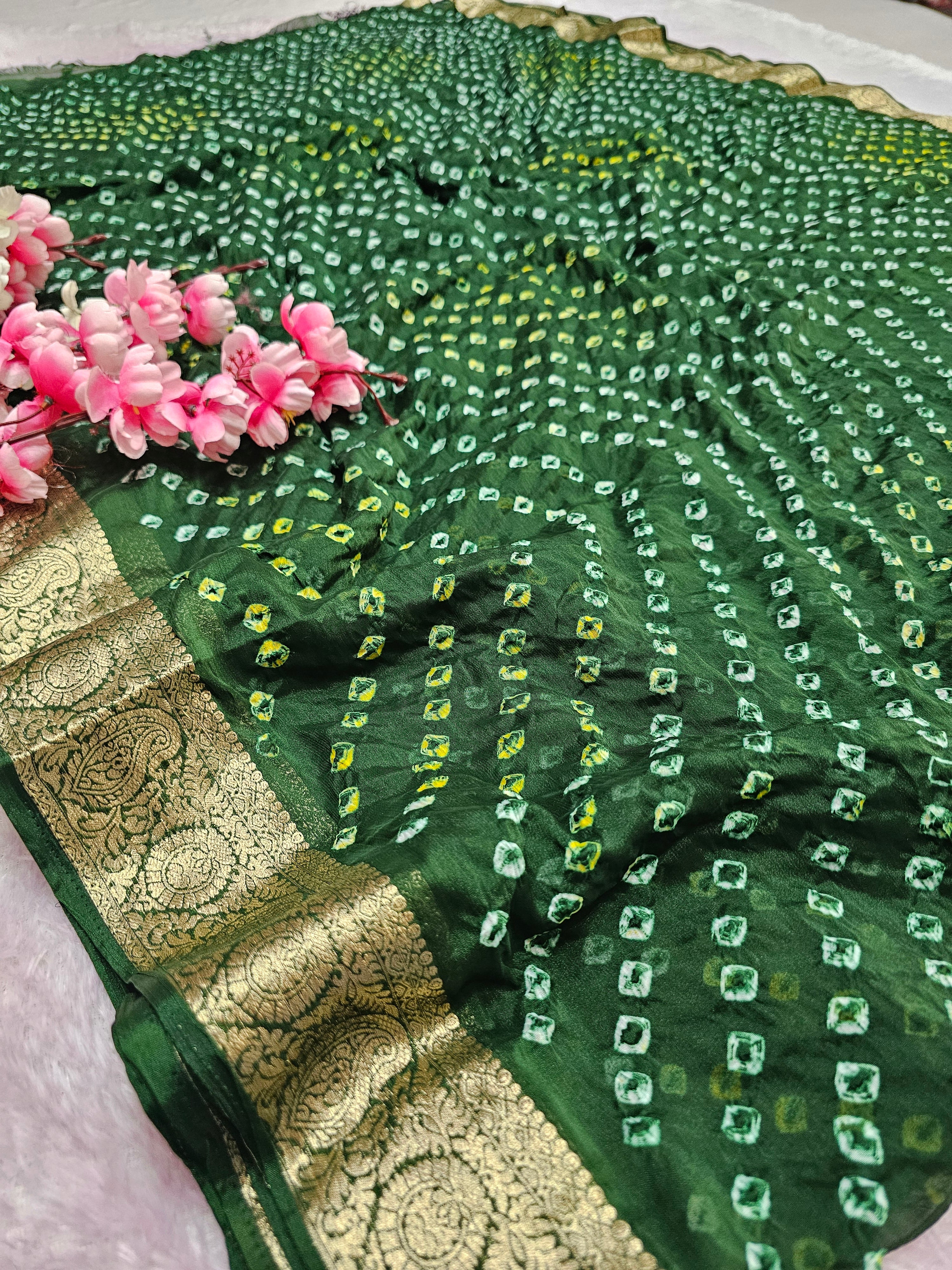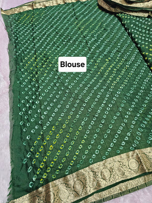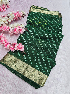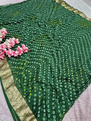 Home 12529 Traditional Hand Bandhani Chinon Silk Soft Saree - Green