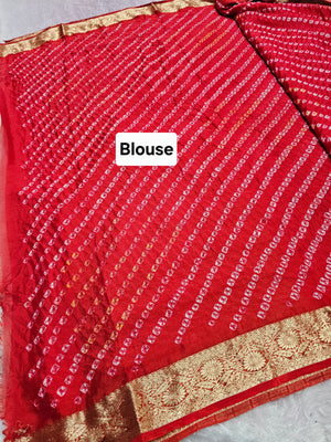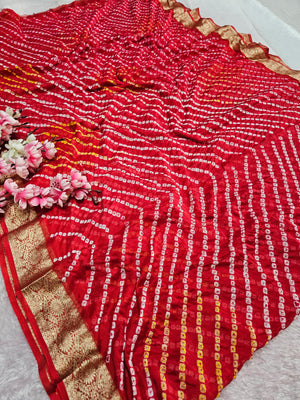 12529 Traditional Hand Bandhani Chinon Silk Soft Saree - Red