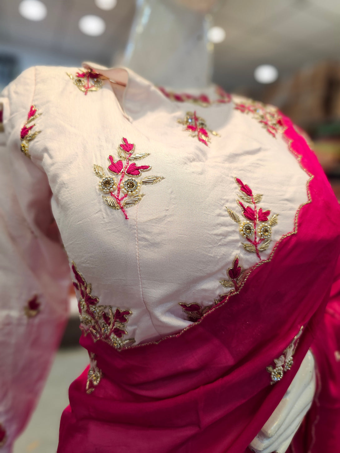 • Blouse: Ready-made heavy designer blouse with 2"-2" margin