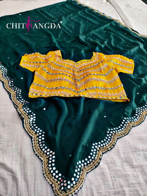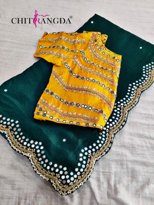 139003 सेलिब्रिटी डिजाइनर मिरर वर्क साड़ी हैवी स्टाइल स्टिच ब्लाउज के साथ