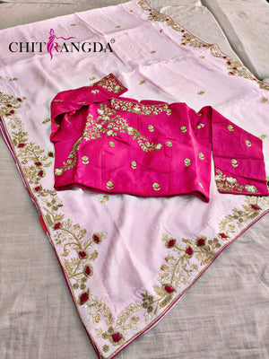 139004 सेलिब्रिटी डिजाइनर गोटा और जरदोजी वर्क साड़ी हैवी स्टाइल स्टिच ब्लाउज के साथ