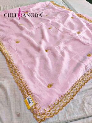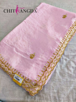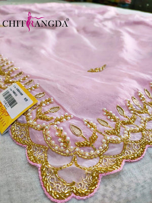 142004 कटदाना और मोती के काम वाली अनोखी डिज़ाइनर साड़ी