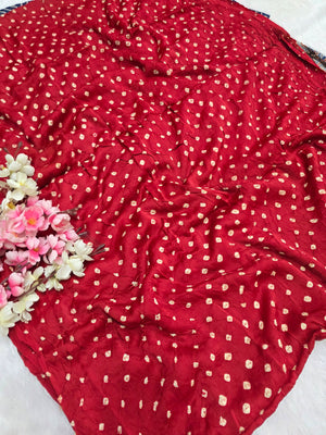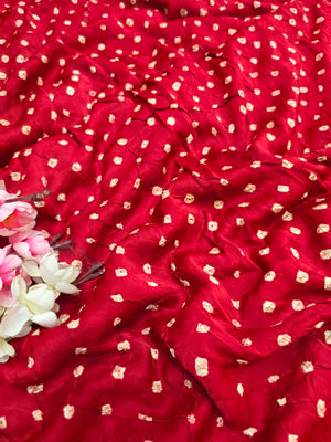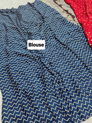 143001 मॉडल सिल्क अजरख साड़ी हाथ बांधनी के साथ - लाल