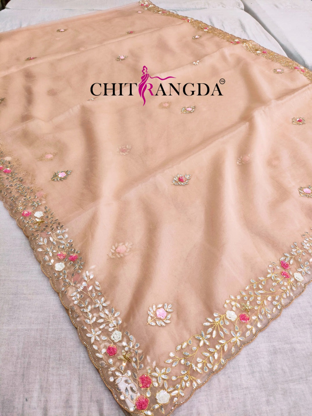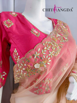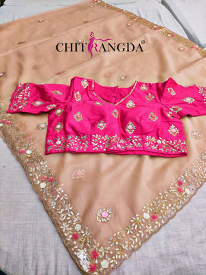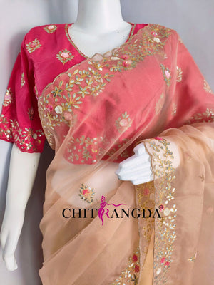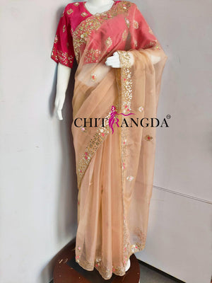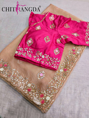 145001 डिज़ाइनर ऑर्गेना साड़ी गोटा वर्क विद स्टिच ब्लाउज