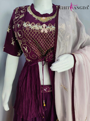 152001 ट्रेंडी लाइट क्रॉप टॉप लहंगा ऑर्गेंजा दुपट्टा के साथ
