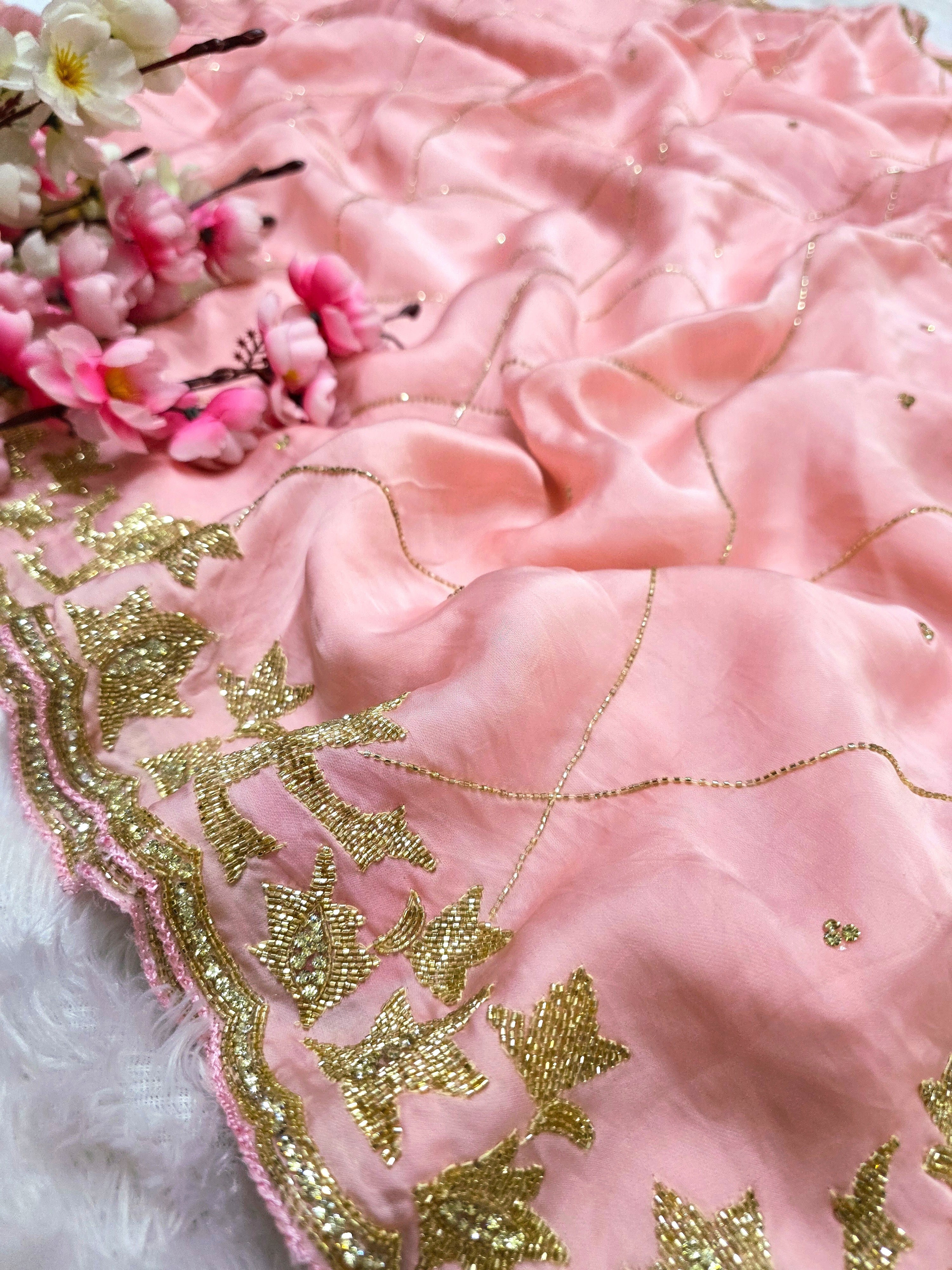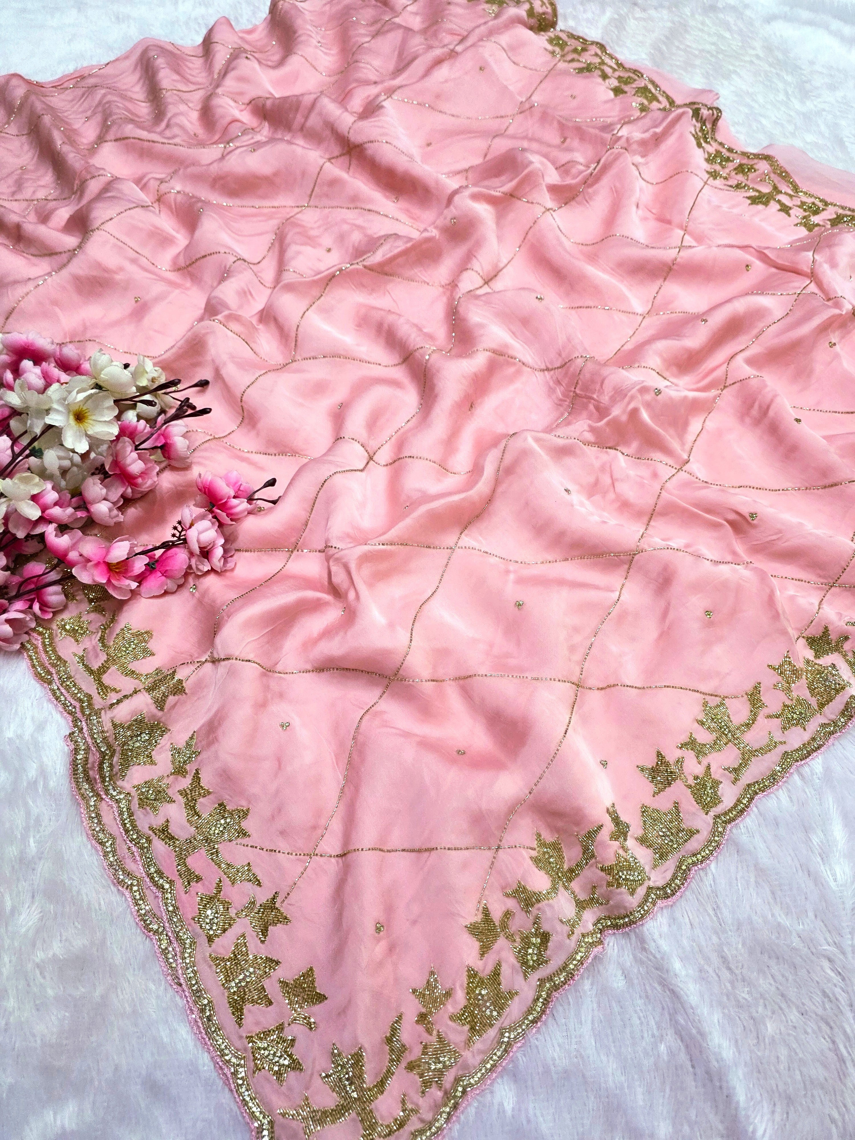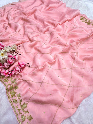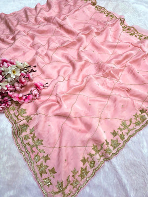 159005 शुद्ध क्रेप सिल्क साड़ी, पूरी साड़ी पर अद्वितीय हस्तकला