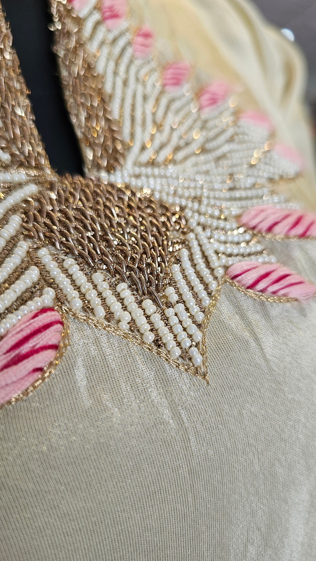 1971 Very Elegant Pure Golden Tissue Silk Party Wear Kurti with Skirt and Organza Dupatta