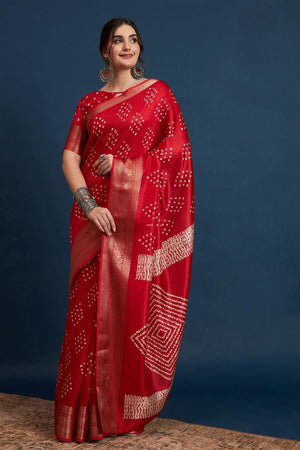 2422 Soft Semi Dola Silk Bandhani Print Saree with Banarasi Border - Red