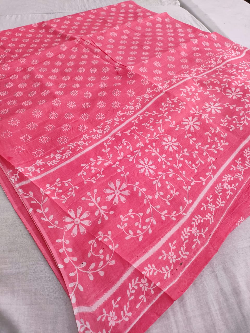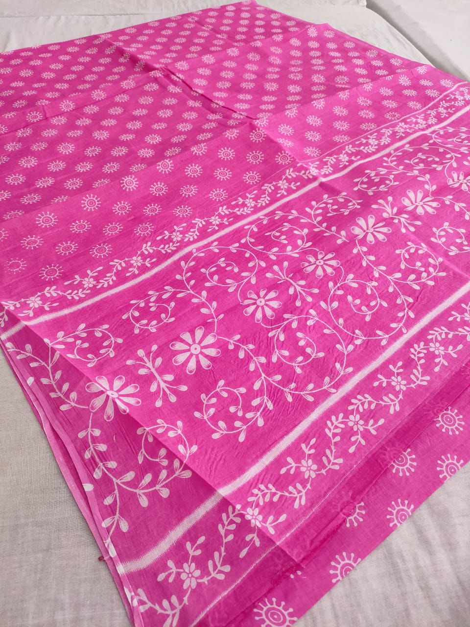 413003 शुद्ध कॉटन ब्लॉक प्रिंटेड साड़ी