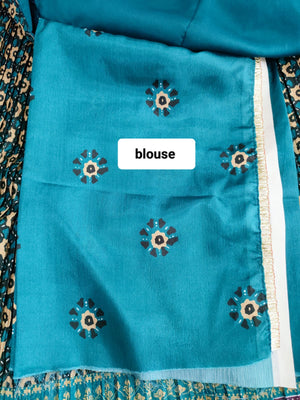 - ब्लाउज : संलग्न अनस्टिच ब्लाउज