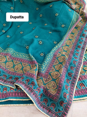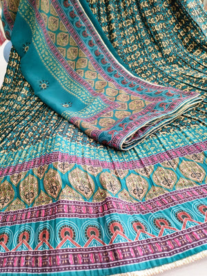 414007 अजरख प्रिंटेड सिल्क क्रश लहंगा सेट