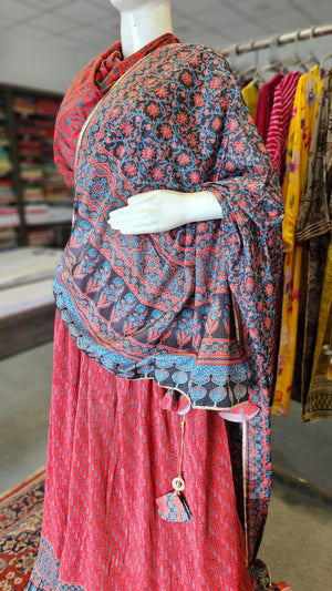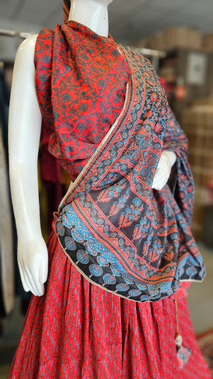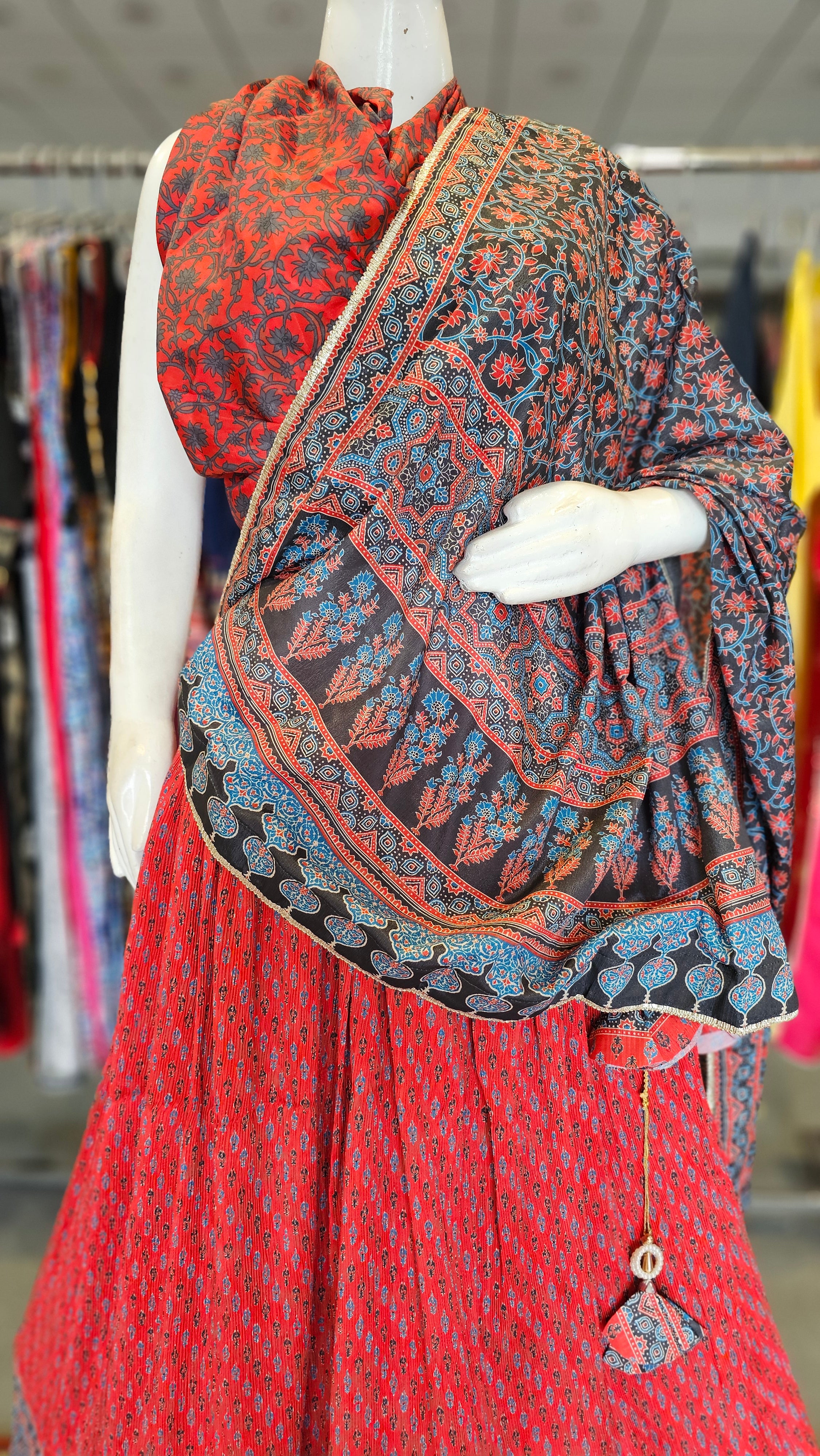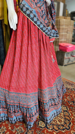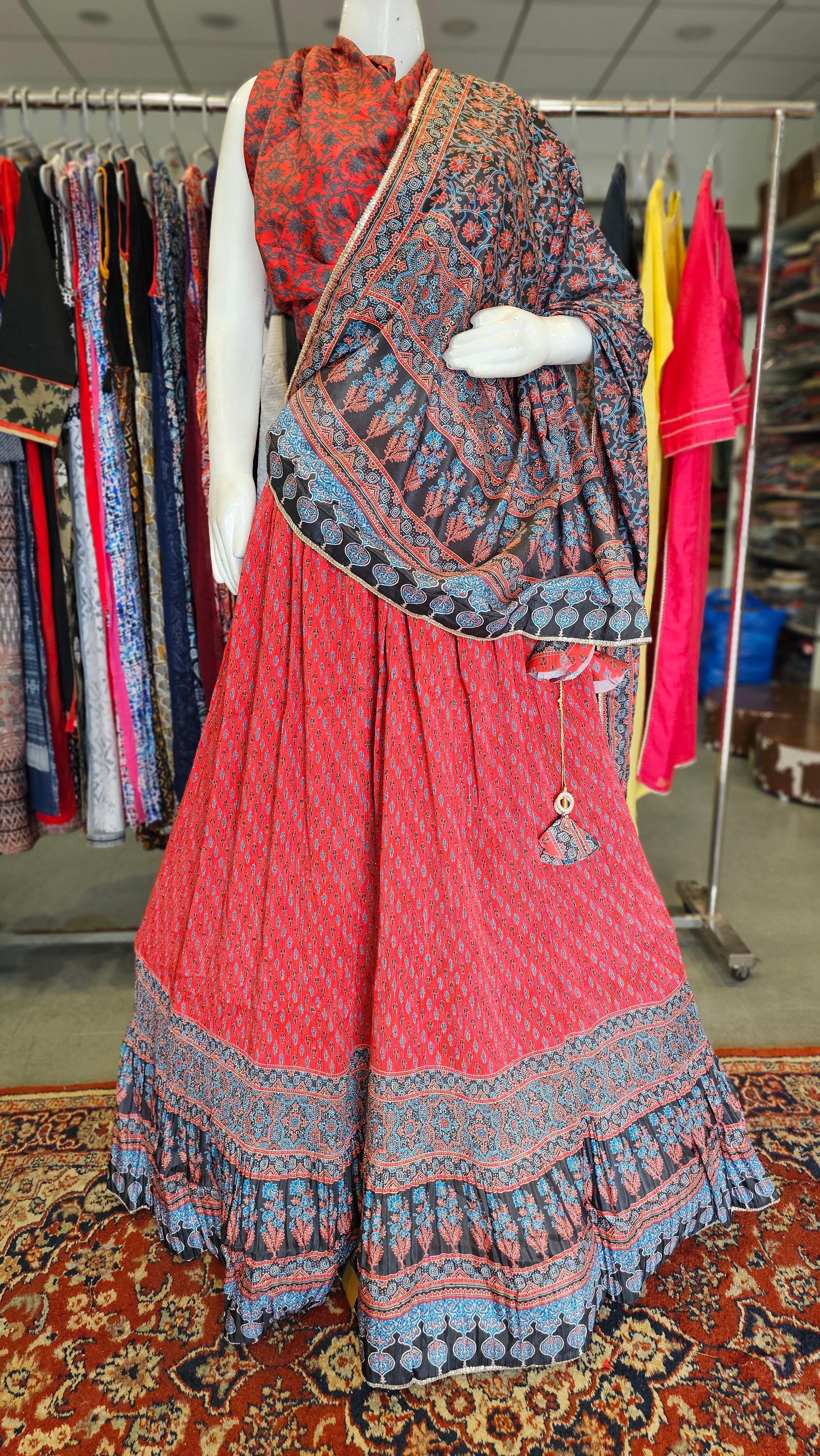 414009 अजरख प्रिंटेड सिल्क क्रश लहंगा सेट
