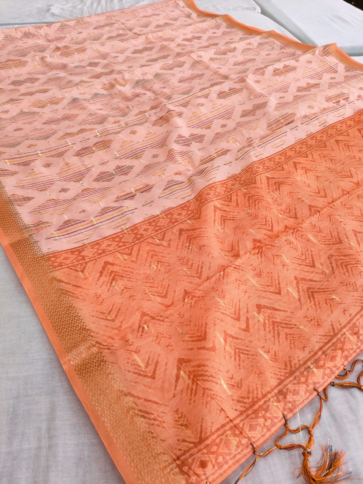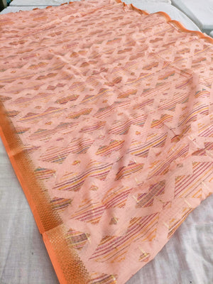 422007 डिज़ाइनर सॉफ्ट लिनन डिजिटल प्रिंटेड साड़ी ज़री बुनाई के साथ