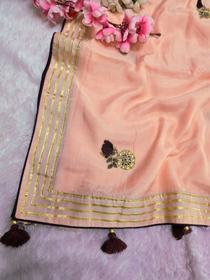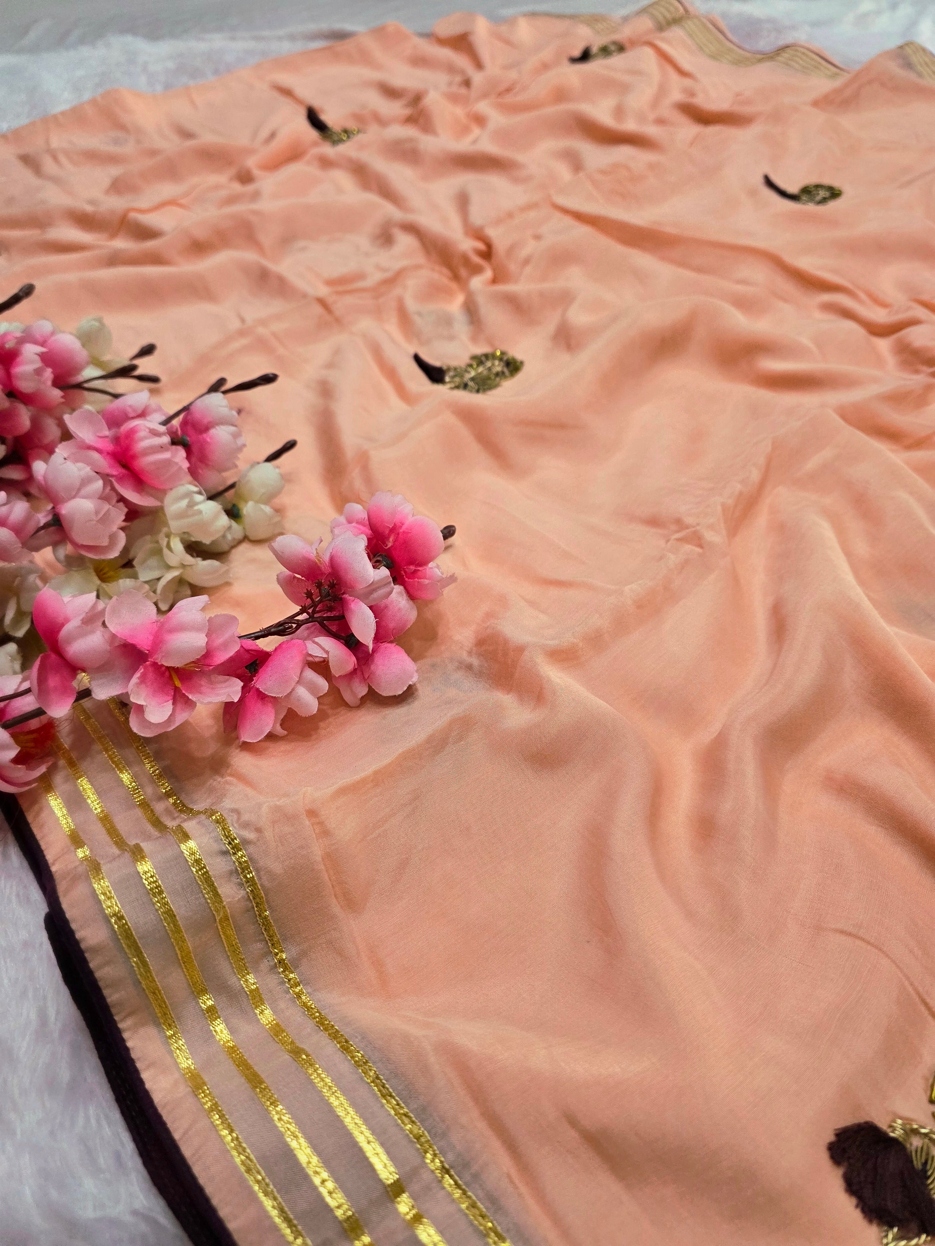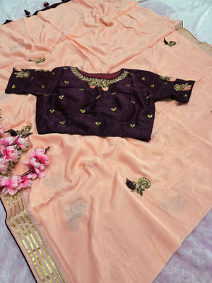 Pure Maslin Silk Designer Saree with Heavy Stitched Blouse