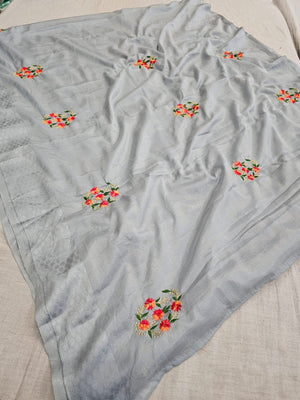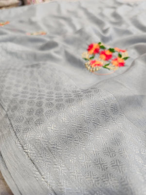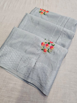 432001 कढ़ाई के काम के साथ फैंसी सेमी पार्टी वियर साड़ियाँ