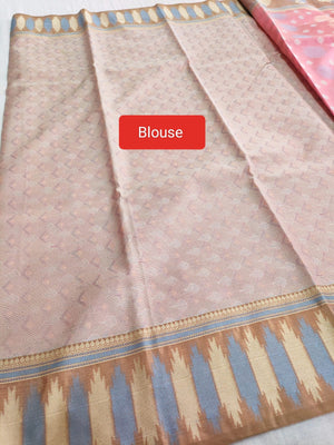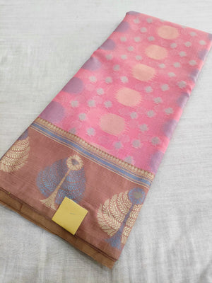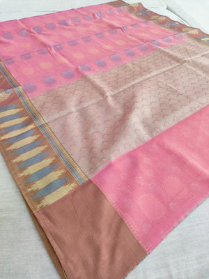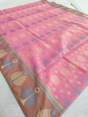 443001 अद्वितीय शुद्ध बनारसी कॉटन रेशम बुनाई साड़ी - गुलाबी