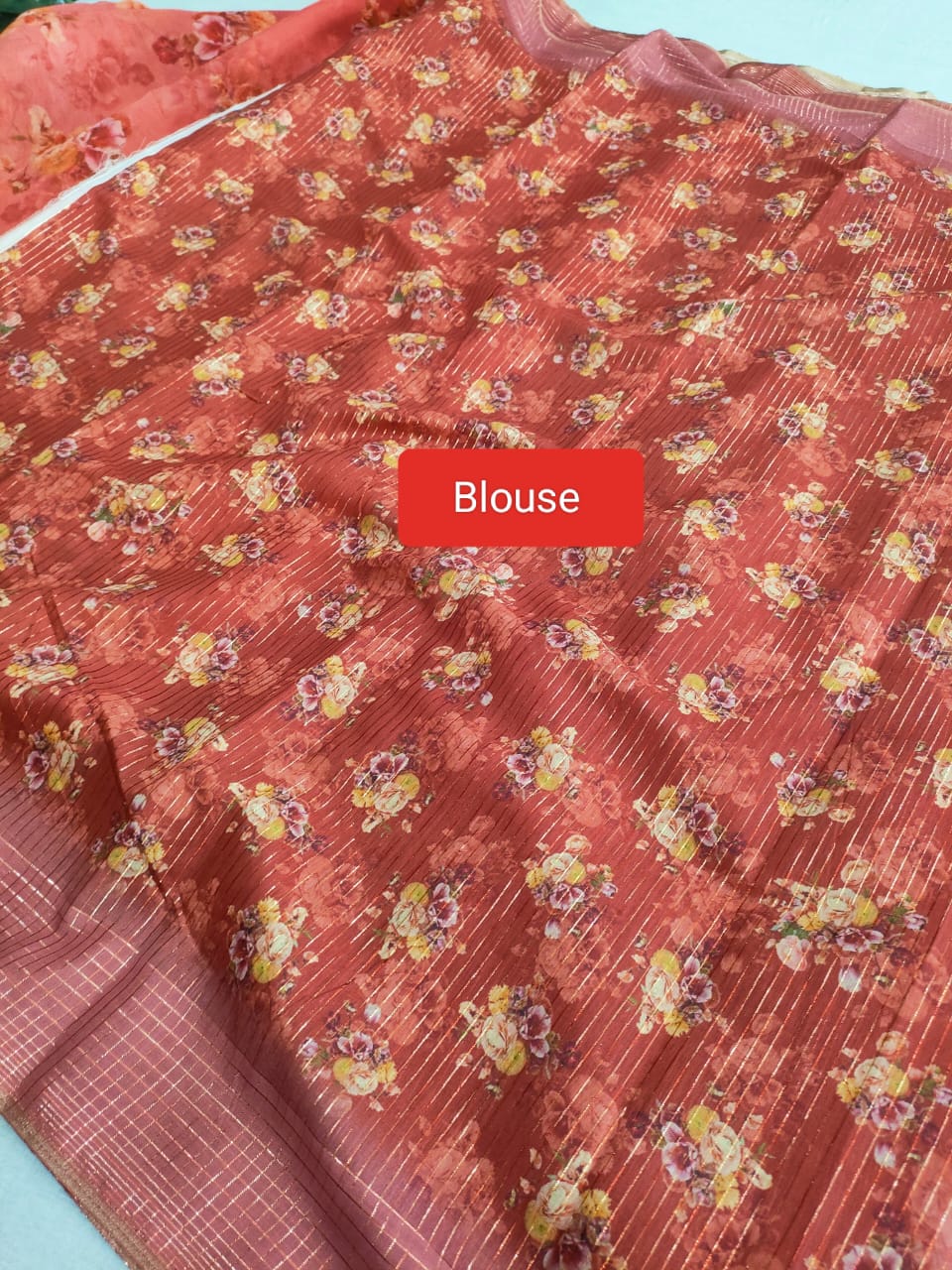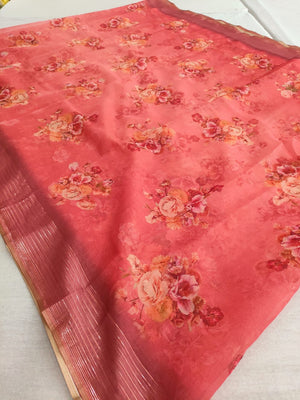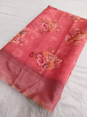 463008 ऑर्गेंज़ा सेमी पार्टी वियर प्रिंटेड साड़ी ज़री बुनाई बॉर्डर के साथ