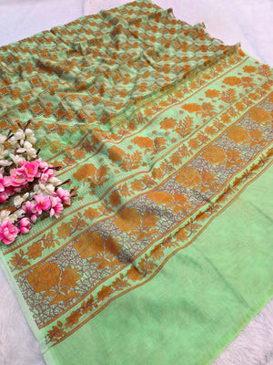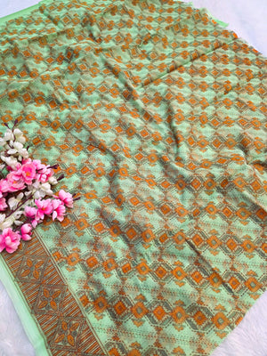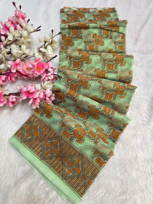 485001 सुपरनेट फ्लावर प्रिंट साड़ी - हरा