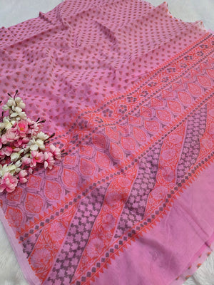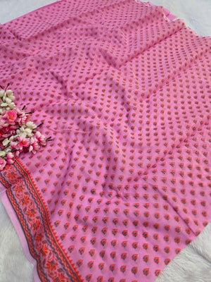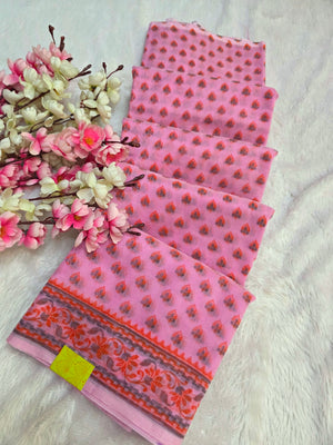 485002 सुपरनेट फ्लावर प्रिंट साड़ी - बेबी पिंक