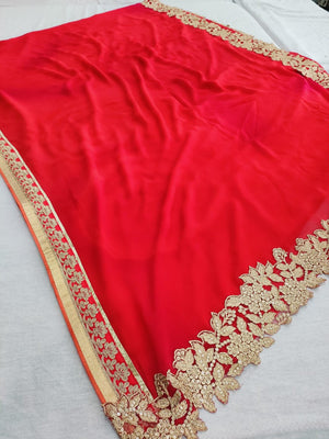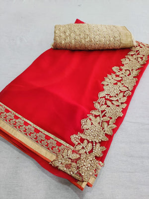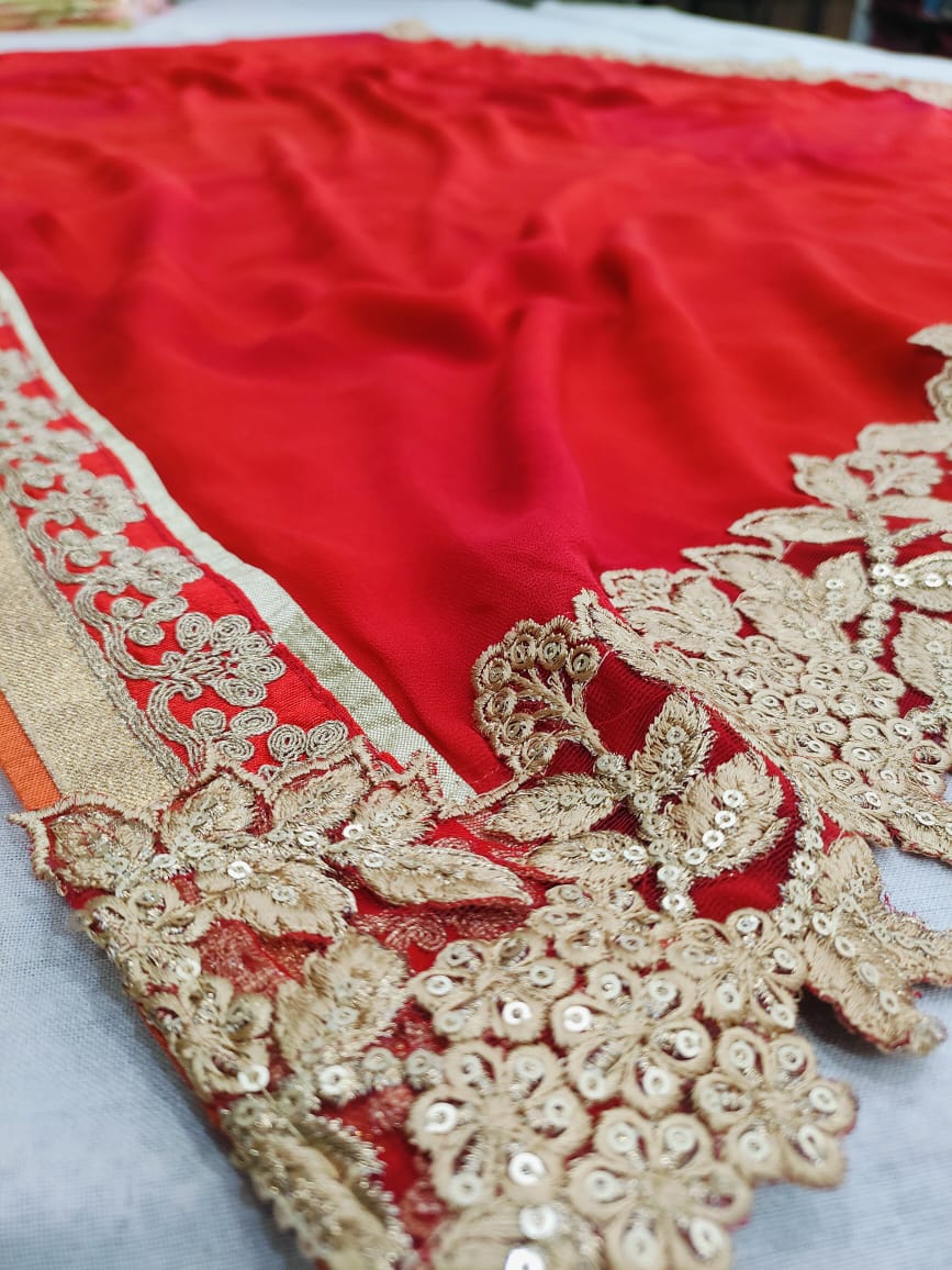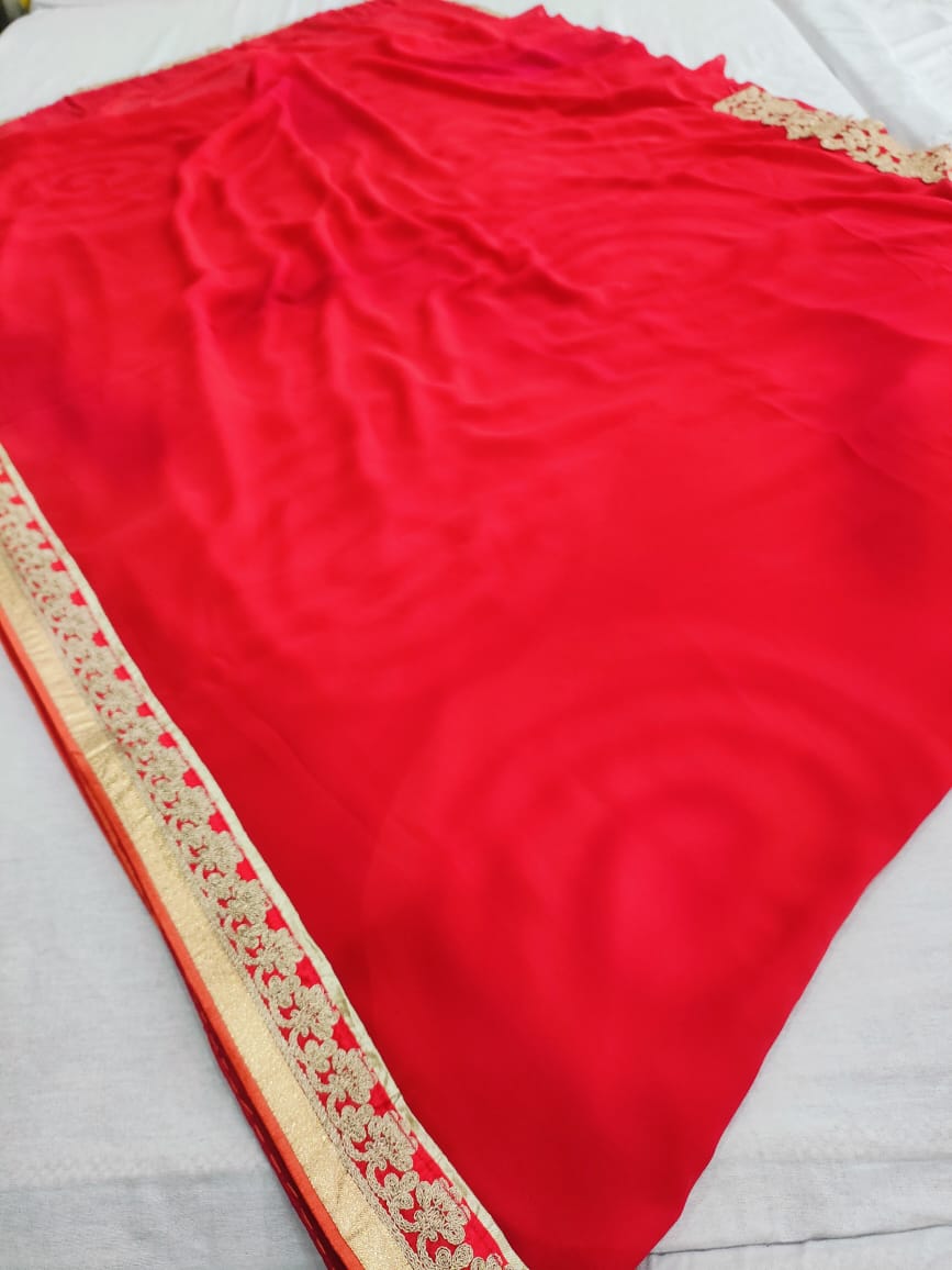 499002 डिजाइनर जॉर्जेट साड़ी भारी डिजाइनर बॉर्डर और भारी अनुक्रम ब्लाउज के साथ
