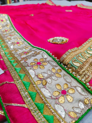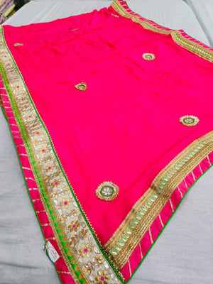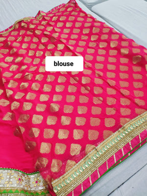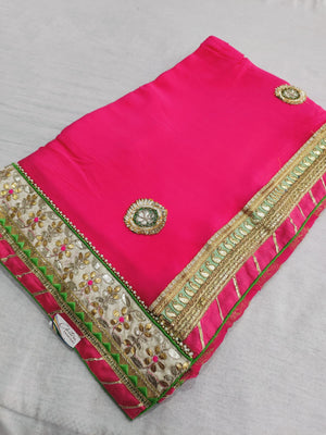 505010 पार्टीवियर चिनॉन सिल्क गोटा पट्टी साड़ी - लाल