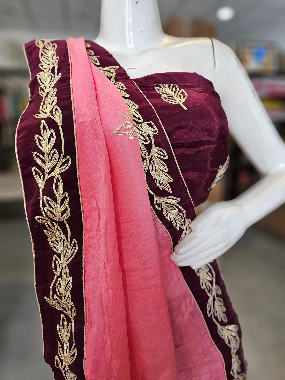 नोट: कैमरा और स्क्रीन में रंग प्रजनन के कारण साड़ी में हल्का रंग भिन्नता हो सकती है।