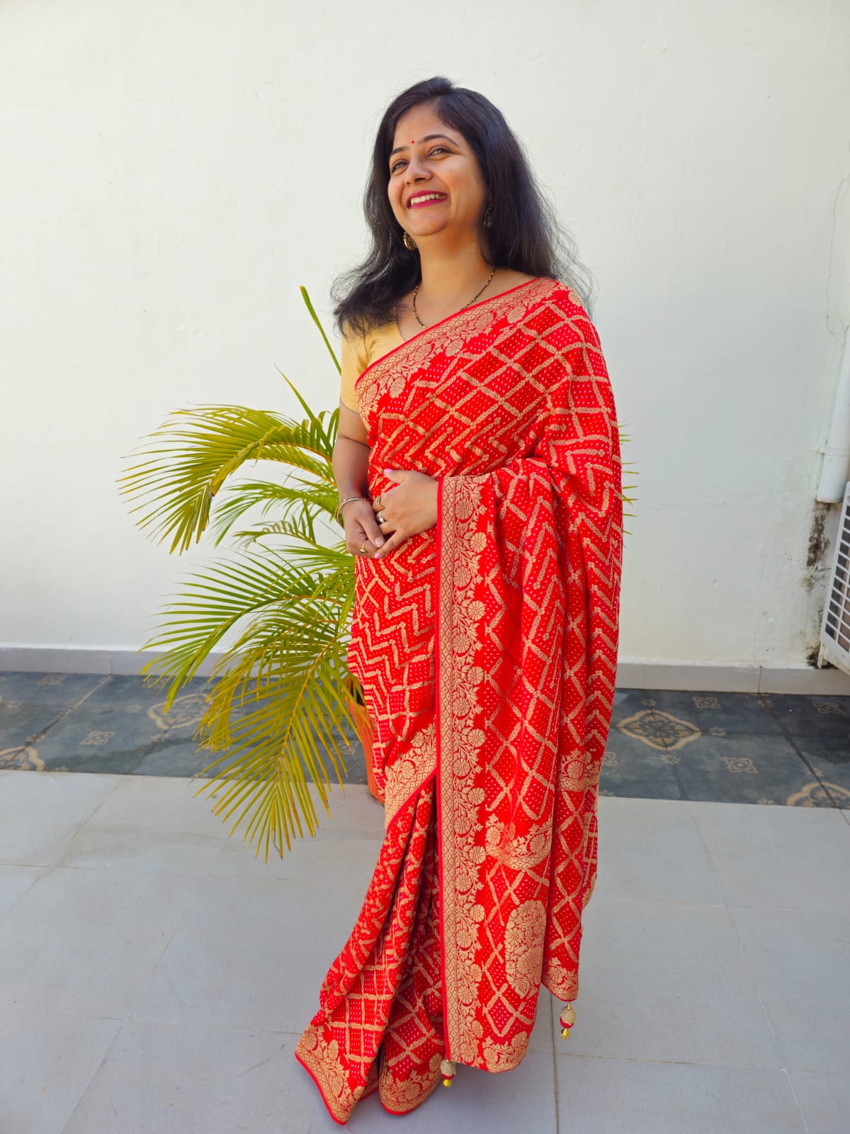 521002 प्रीमियम बंधनी घाटचोला साड़ी - लाल