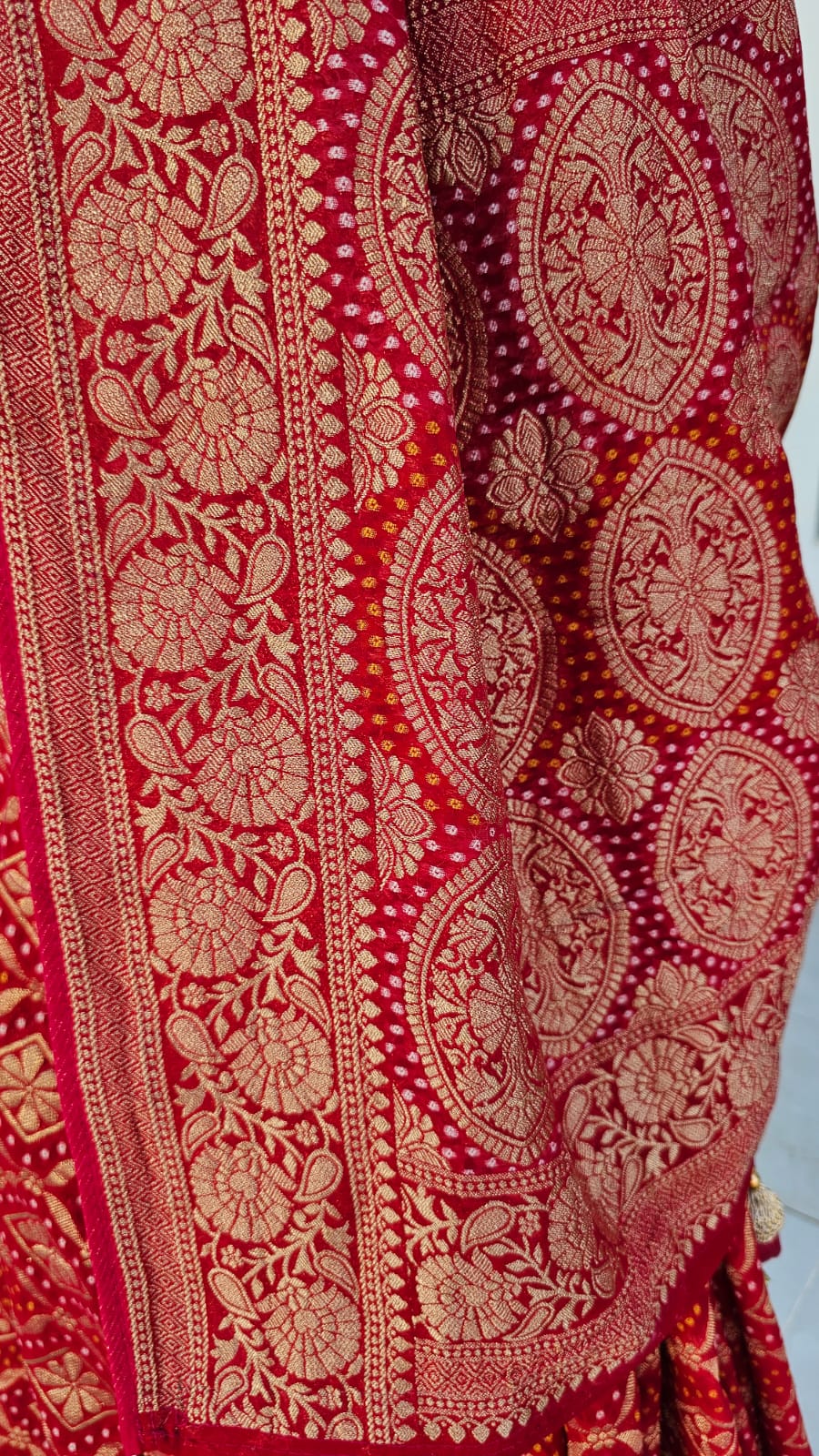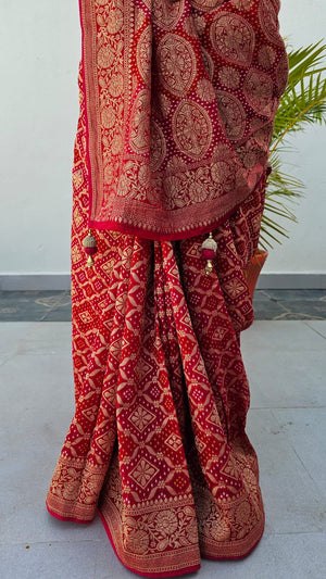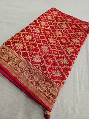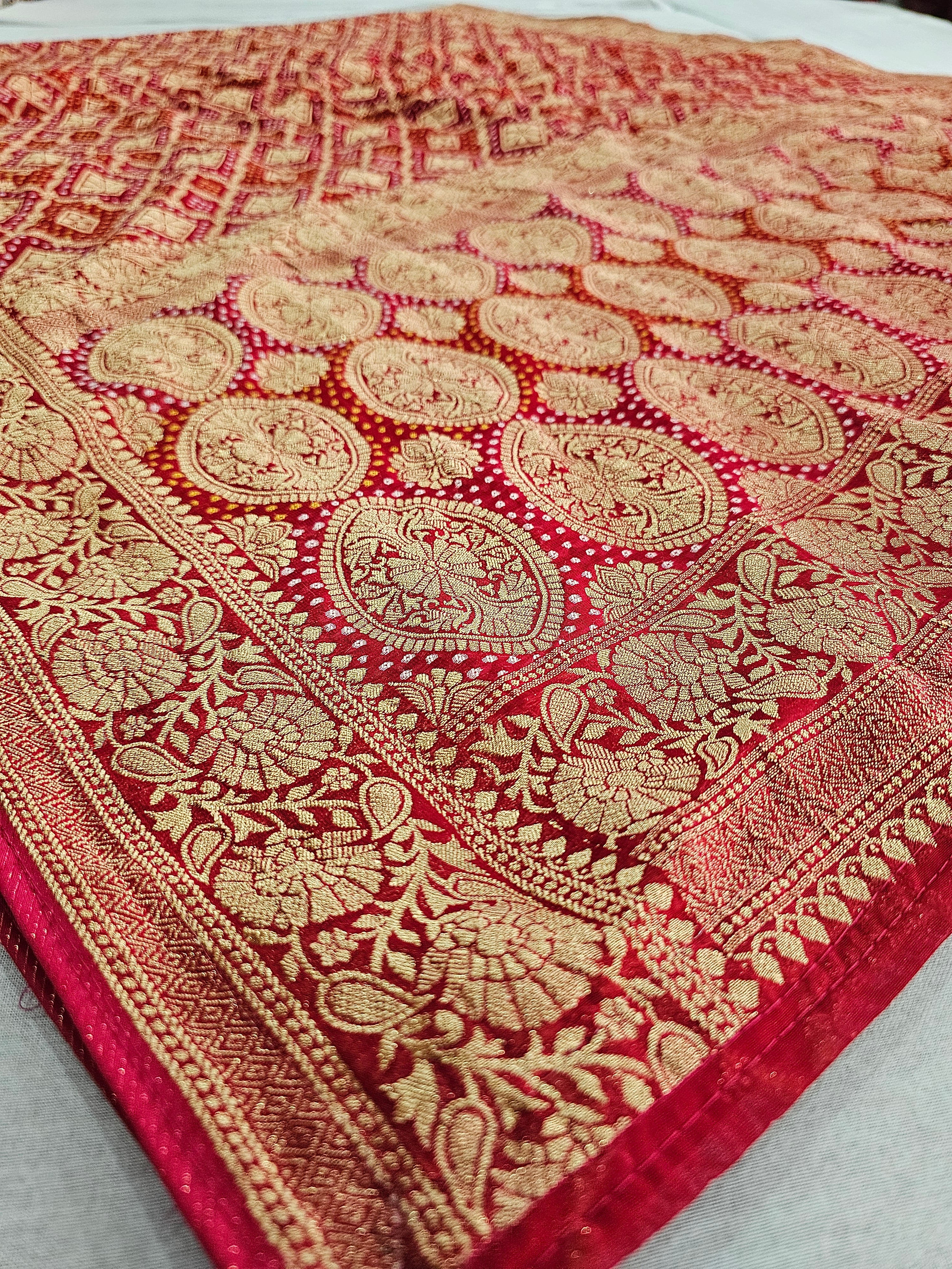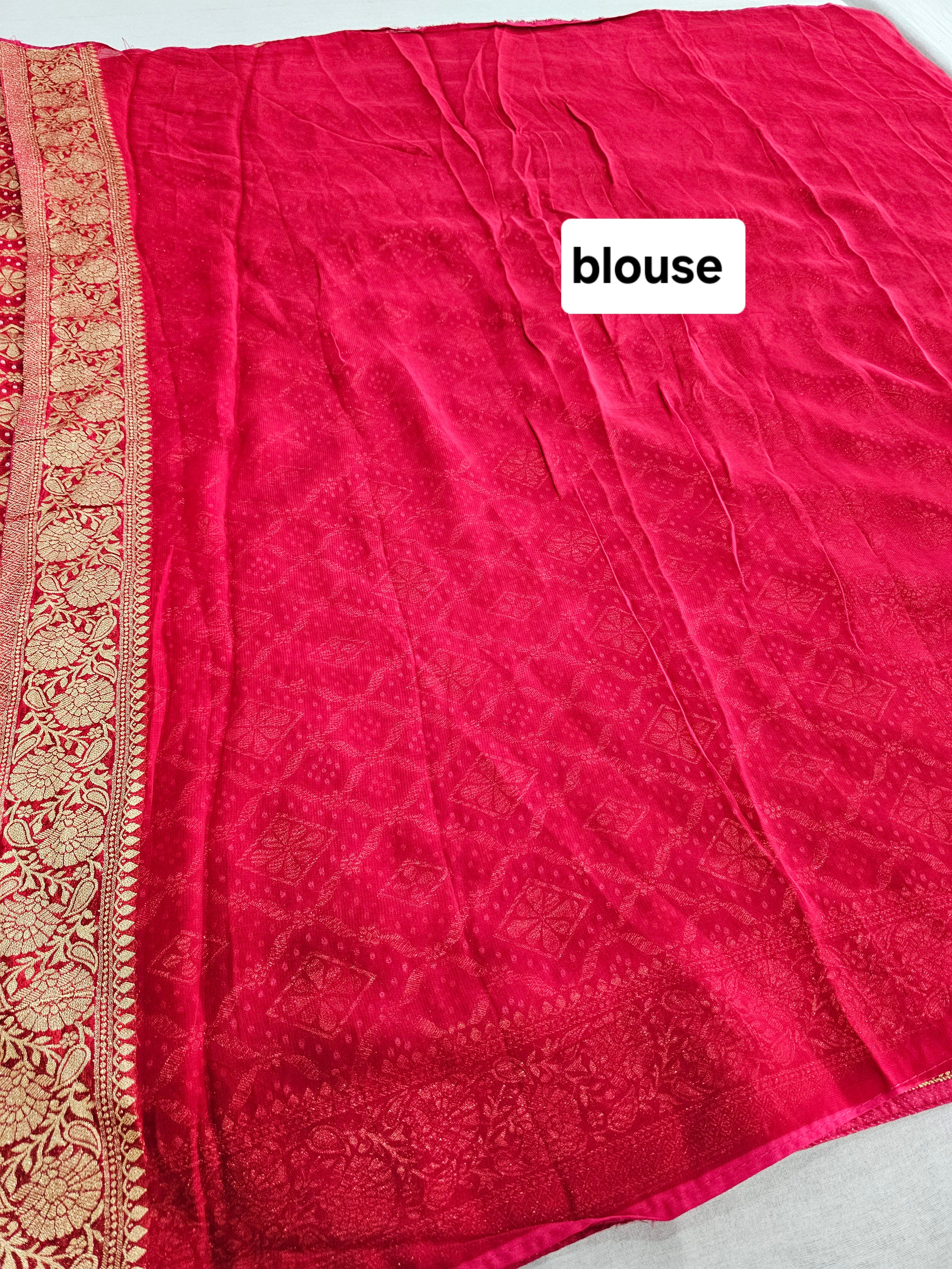 521003 प्रीमियम बंधनी घाटचोला साड़ी - रानी