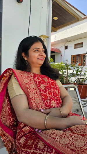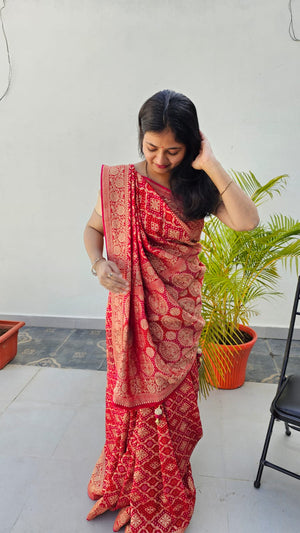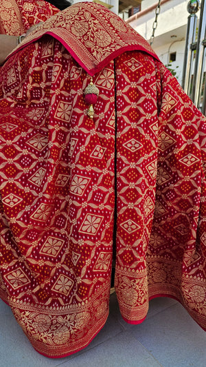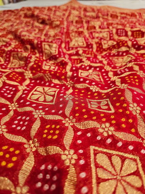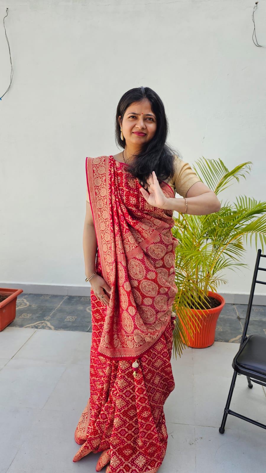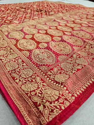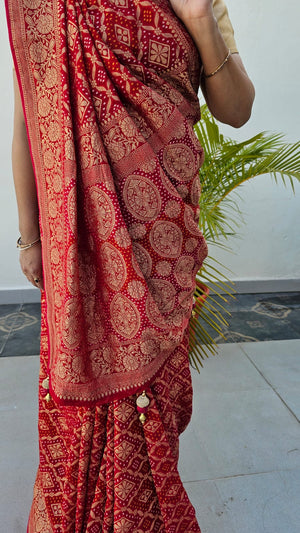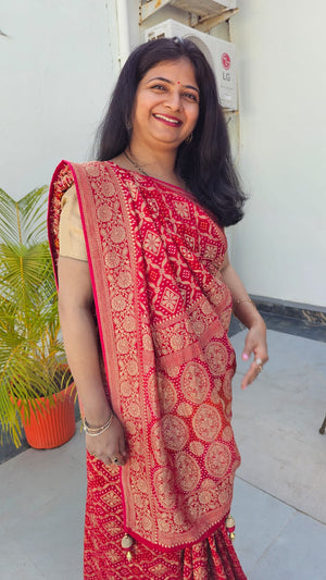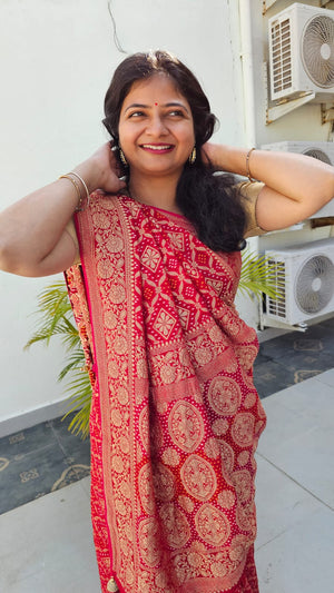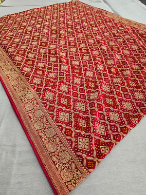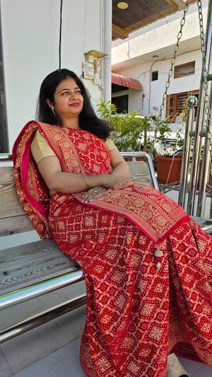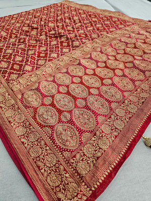 521003 प्रीमियम बंधनी घाटचोला साड़ी - रानी