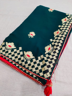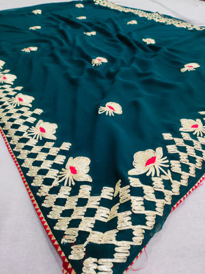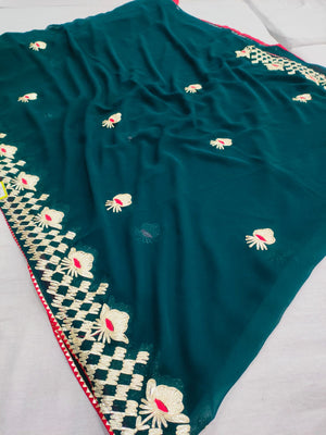 523003 राजस्थानी गोटा पट्टी जॉर्जेट साड़ी - नेवी ब्लू